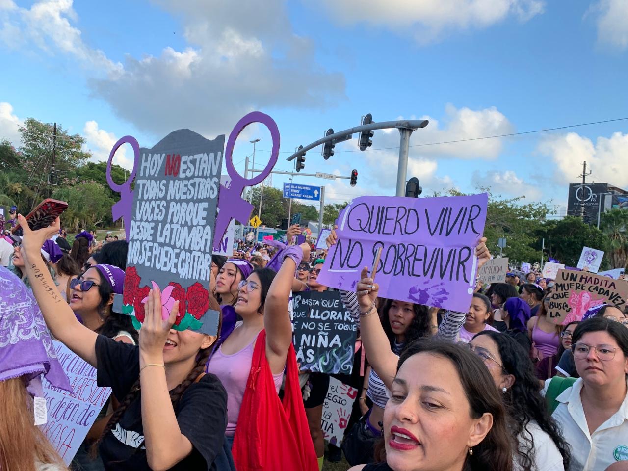 Activistas recordaron que Quintana Roo ocupa los primeros lugares nacionales en trata de personas y que el municipio de Benito Juárez encabeza reportes de llamadas al 911 por violencia de pareja. Además, subrayaron que a nivel nacional siete de cada diez mujeres mayores de 15 años han vivido algún tipo de violencia. Tan solo el año pasado, se reportaron 785 mujeres rescatadas de redes de trata en la entidad, de acuerdo con cifras oficiales mencionadas durante la movilización.