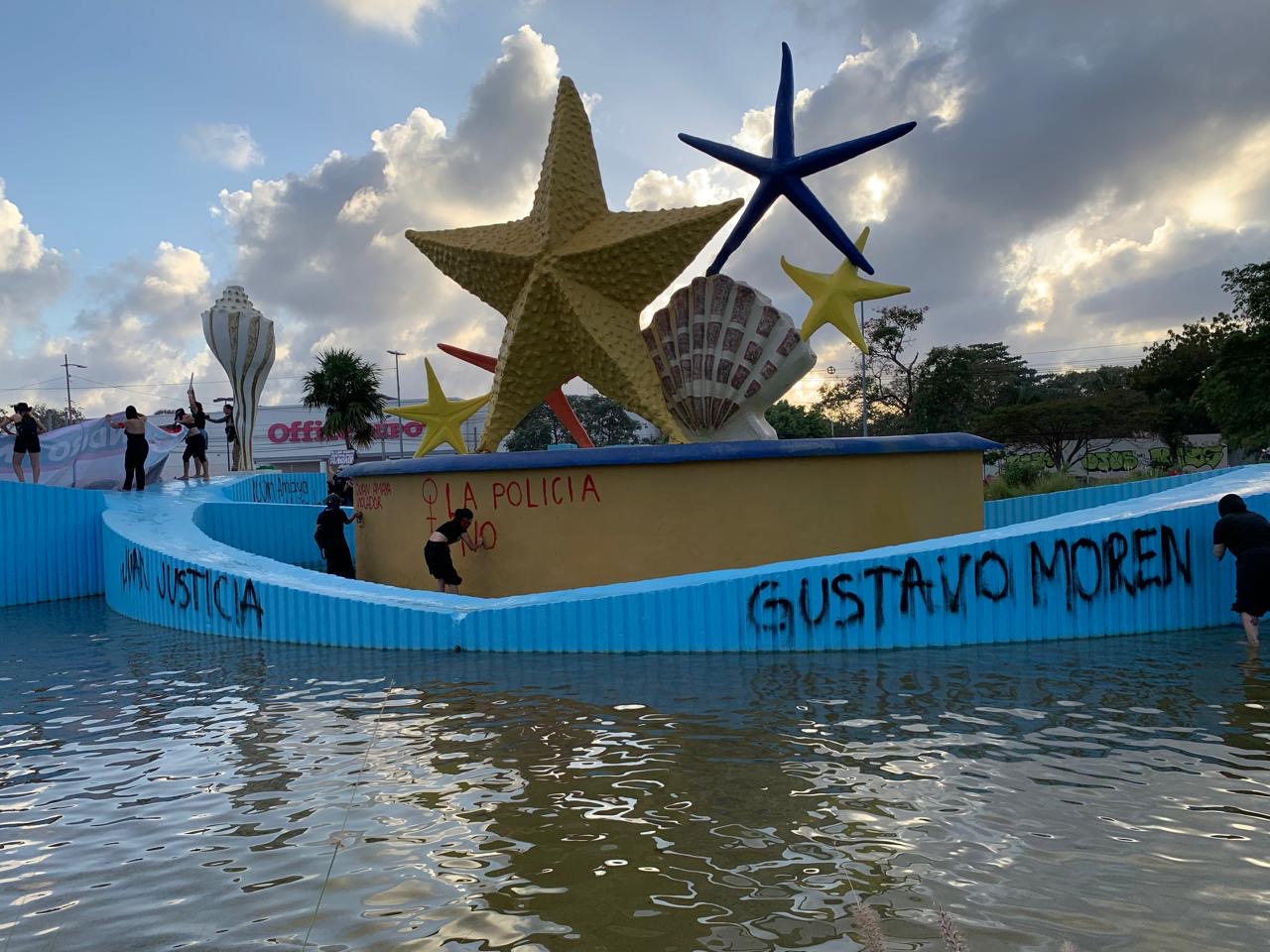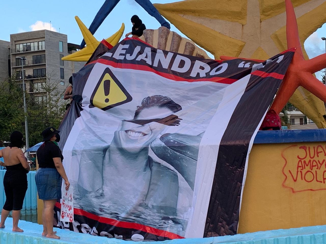 Durante el trayecto, realizaron una pausa frente a Plaza Las Américas y en la Glorieta del Ceviche, donde colocaron una pancarta con el nombre y rostro de un joven acusado de abuso sexual, como acto simbólico para visibilizar casos que afirman, no han encontrado justicia. En ese punto también se plasmaron consignas en el monumento para denunciar agresiones y exigir castigo a responsables.