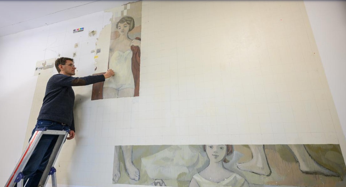 La obra “La alegría de vivir” de 1956 se revela tras años de restauración, con su restauración completa programada para el 7 de abril