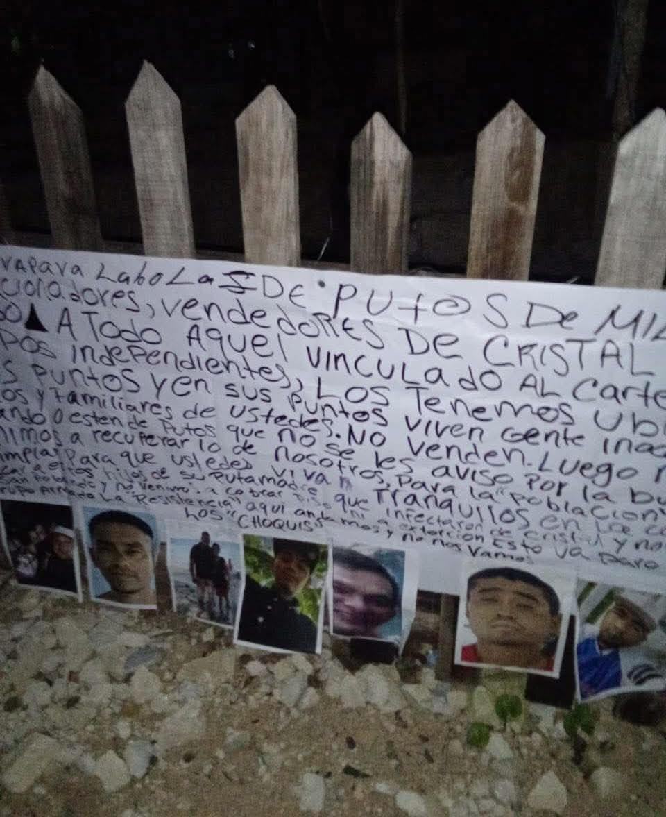 Narcomanta en Cancún “Exhibe” a Presuntos Extorsionadores y Vendedores de Droga