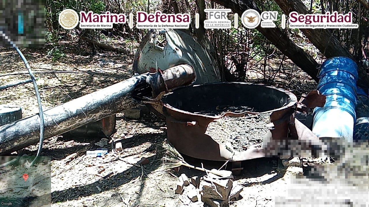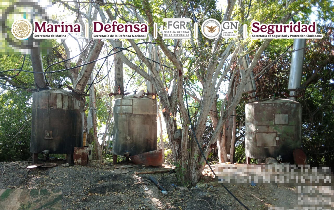 Esta acción se llevó a cabo cuando elementos de la Armada de México, al realizar recorridos terrestres, localizaron dos laboratorios donde hallaron alrededor de 4,900 kilos de metanfetamina, 3,180 litros de sustancias químicas, seis reactores de 1,500 litros, cuatro reactores de 500 litros, 13 destiladoras de 100 litros, una mezcladora de 1,000 litros, y material diverso.