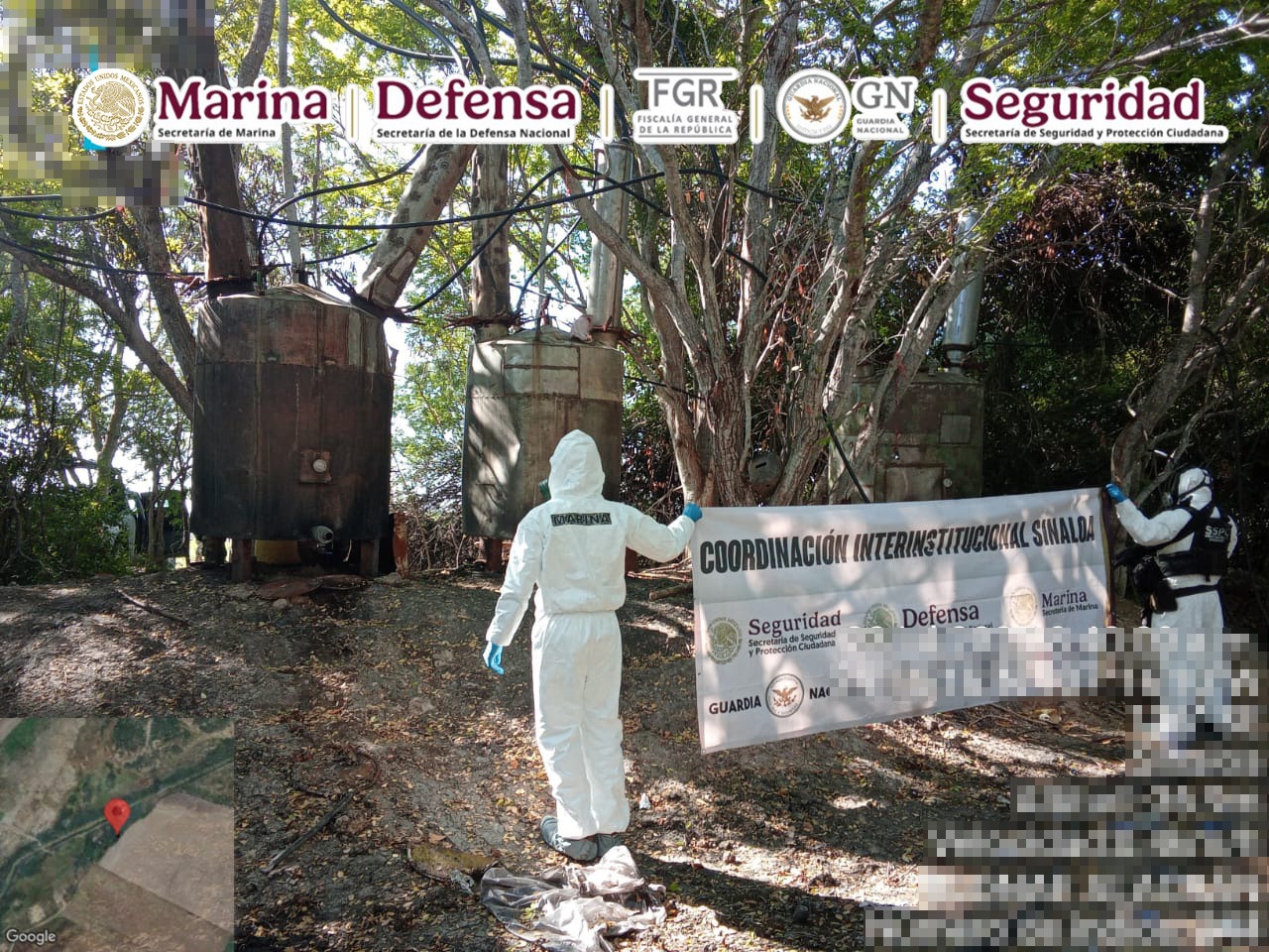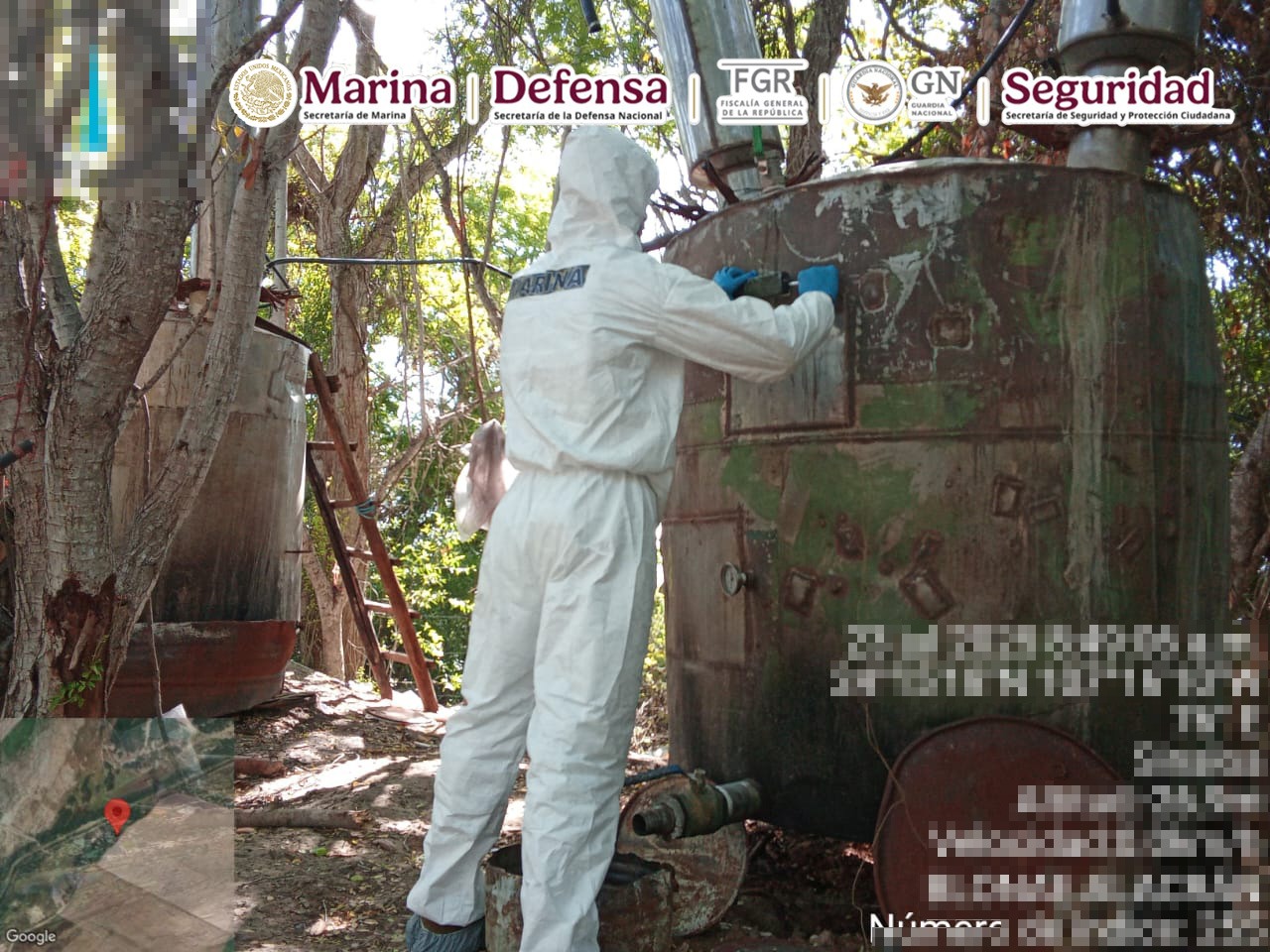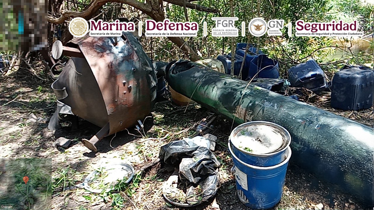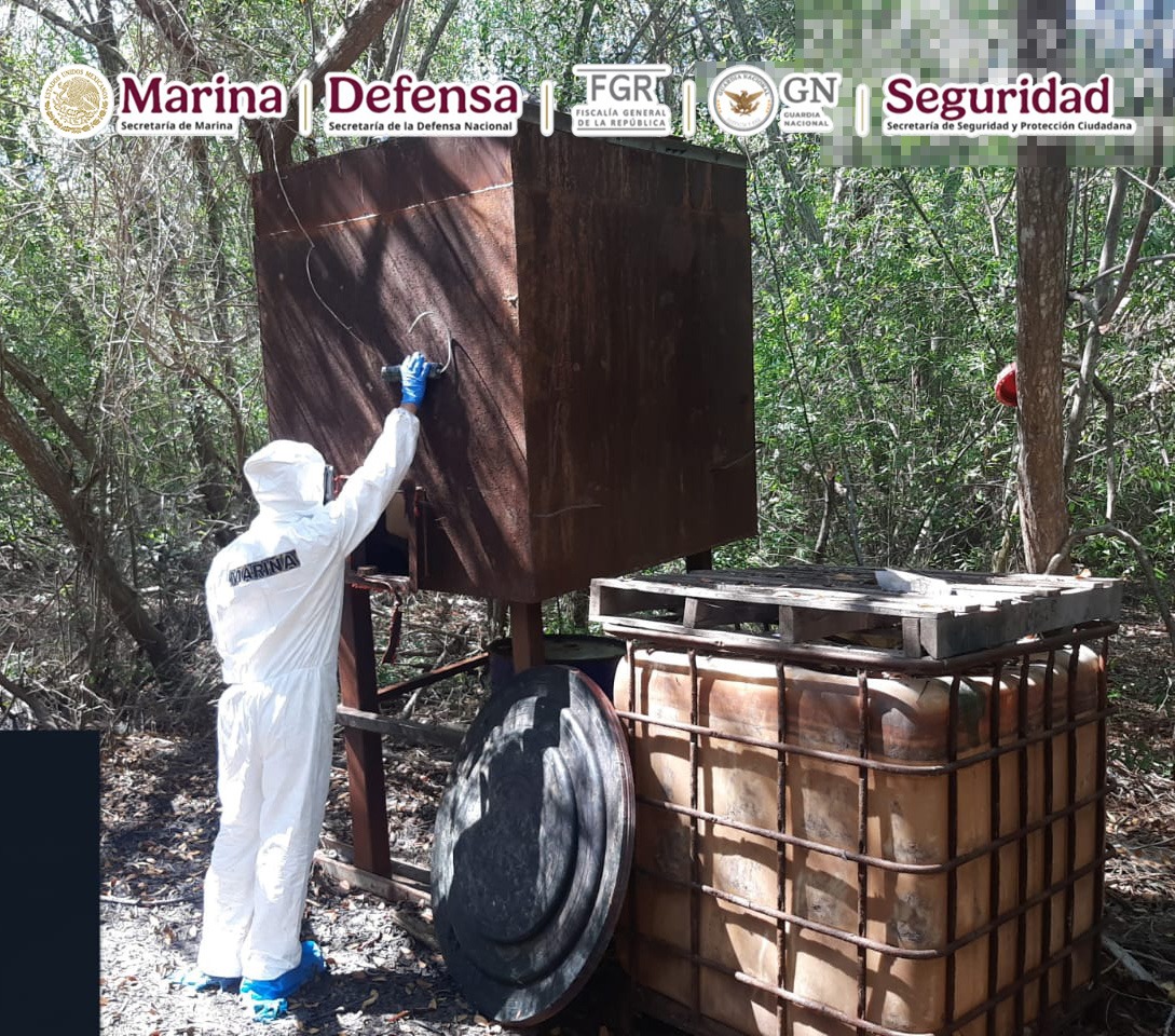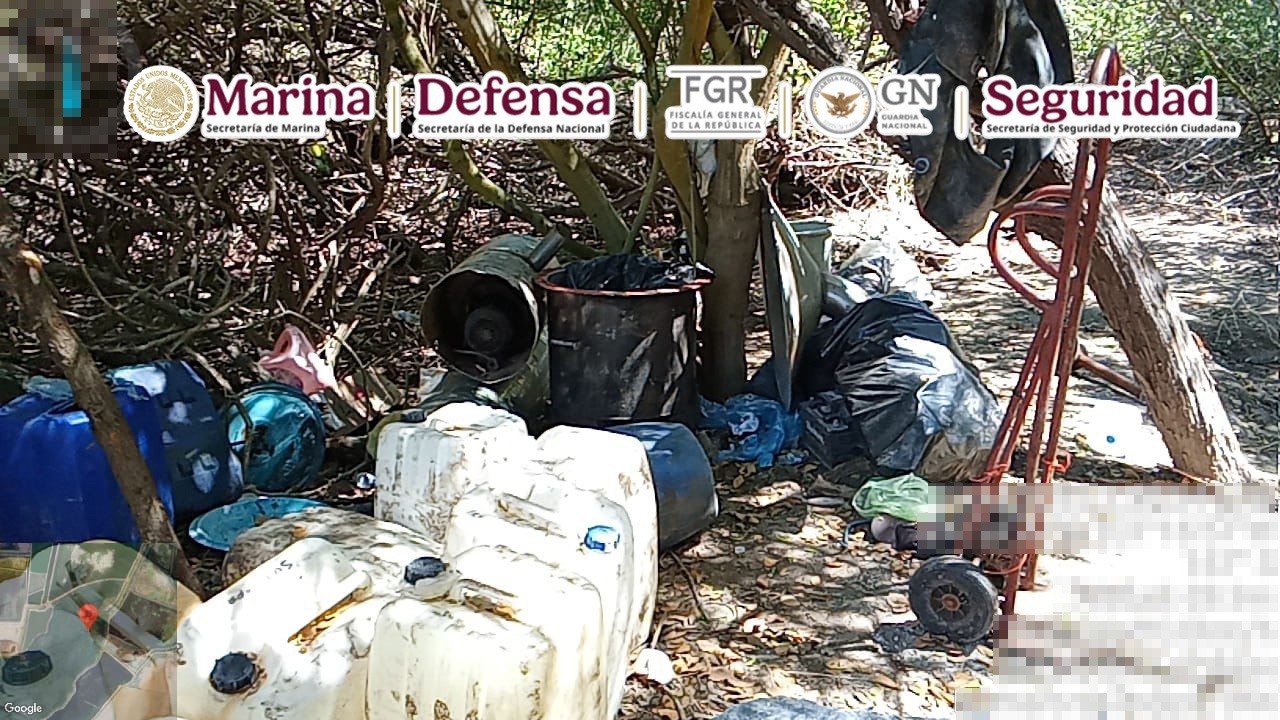 Esta acción se llevó a cabo cuando elementos de la Armada de México, al realizar recorridos terrestres, localizaron dos laboratorios donde hallaron alrededor de 4,900 kilos de metanfetamina, 3,180 litros de sustancias químicas, seis reactores de 1,500 litros, cuatro reactores de 500 litros, 13 destiladoras de 100 litros, una mezcladora de 1,000 litros, y material diverso.