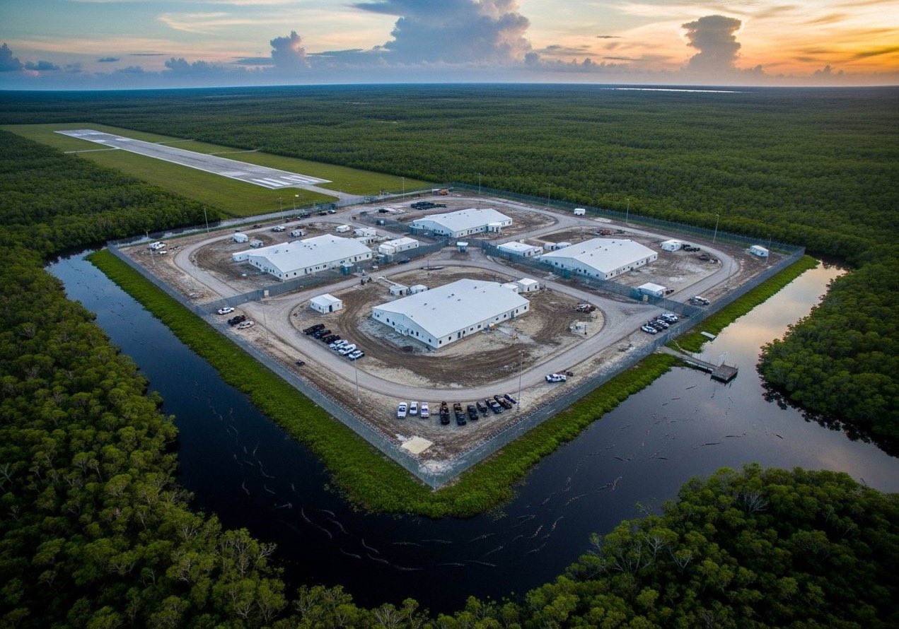 Enclavado en medio del húmedo ecosistema subtropical de humedales de Florida, “Alligator Alcatraz” se transformó de un aeropuerto de entrenamiento y transición a un campamento temporal para migrantes.