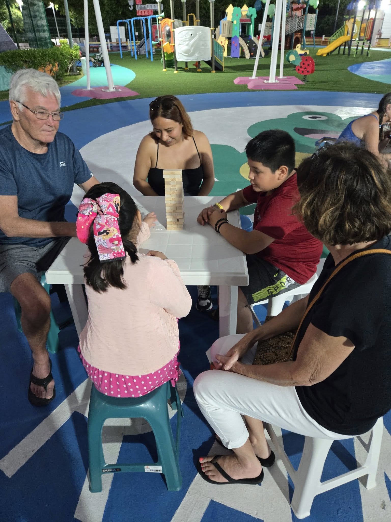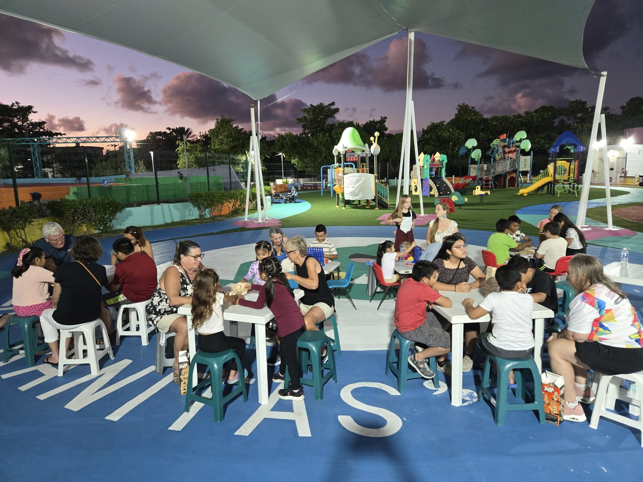 Lisa Godfrey, creadora de las Noches de Juegos, recordó que desde agosto del 2023 se reúnen una noche al mes niños y adultos en un ambiente de sano esparcimiento para convivir y competir intentando vencer a sus contrincantes en la mesa. Mencionó que la asistencia fue menor a la esperada y comentó que, desconoce por qué razón, no muchos niños acuden al parque de Las Ranitas en las Noches de Juegos, aunque no comprende los motivos.