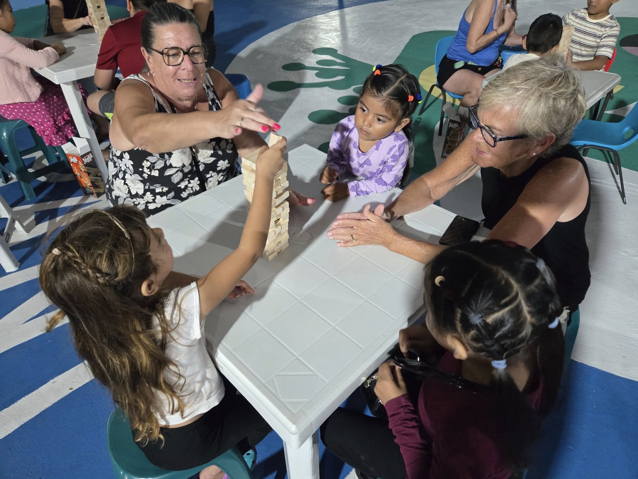 Lisa Godfrey, creadora de las Noches de Juegos, recordó que desde agosto del 2023 se reúnen una noche al mes niños y adultos en un ambiente de sano esparcimiento para convivir y competir intentando vencer a sus contrincantes en la mesa. Mencionó que la asistencia fue menor a la esperada y comentó que, desconoce por qué razón, no muchos niños acuden al parque de Las Ranitas en las Noches de Juegos, aunque no comprende los motivos.