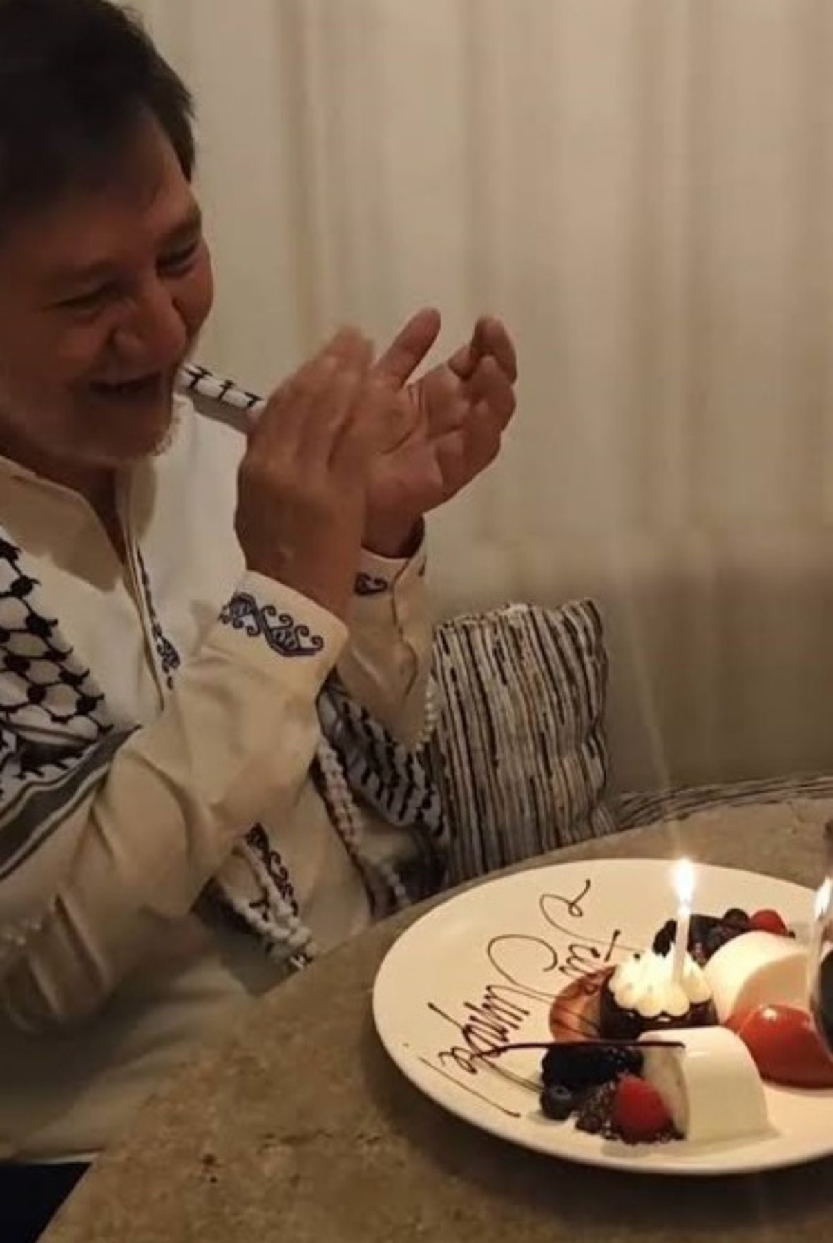 En las imágenes, compartidas en redes sociales, se observa al legislador en un ambiente festivo dentro del restaurante del hotel, acompañado por personal del establecimiento, mientras recibe un festejo durante su estancia en el destino turístico.