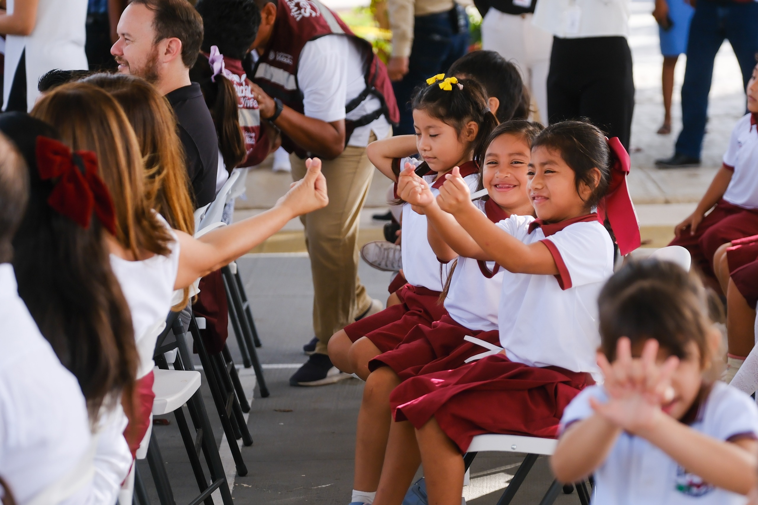 Acompañada del presidente municipal Diego Castañón Trejo y de la presidenta honoraria del Sistema DIF Quintana Roo, Verónica Lezama Espinosa, la titular del Ejecutivo pidió a los alumnos que usen el domo para sus actividades, pero también para hacer deporte.