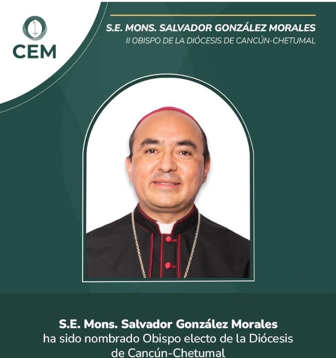 El nuevo obispo de la Diócesis Cancún-Chetumal Monseñor Salvador González Morales, asumirá la titularidad y tomará posesión el viernes 27 de febrero de 2026.
