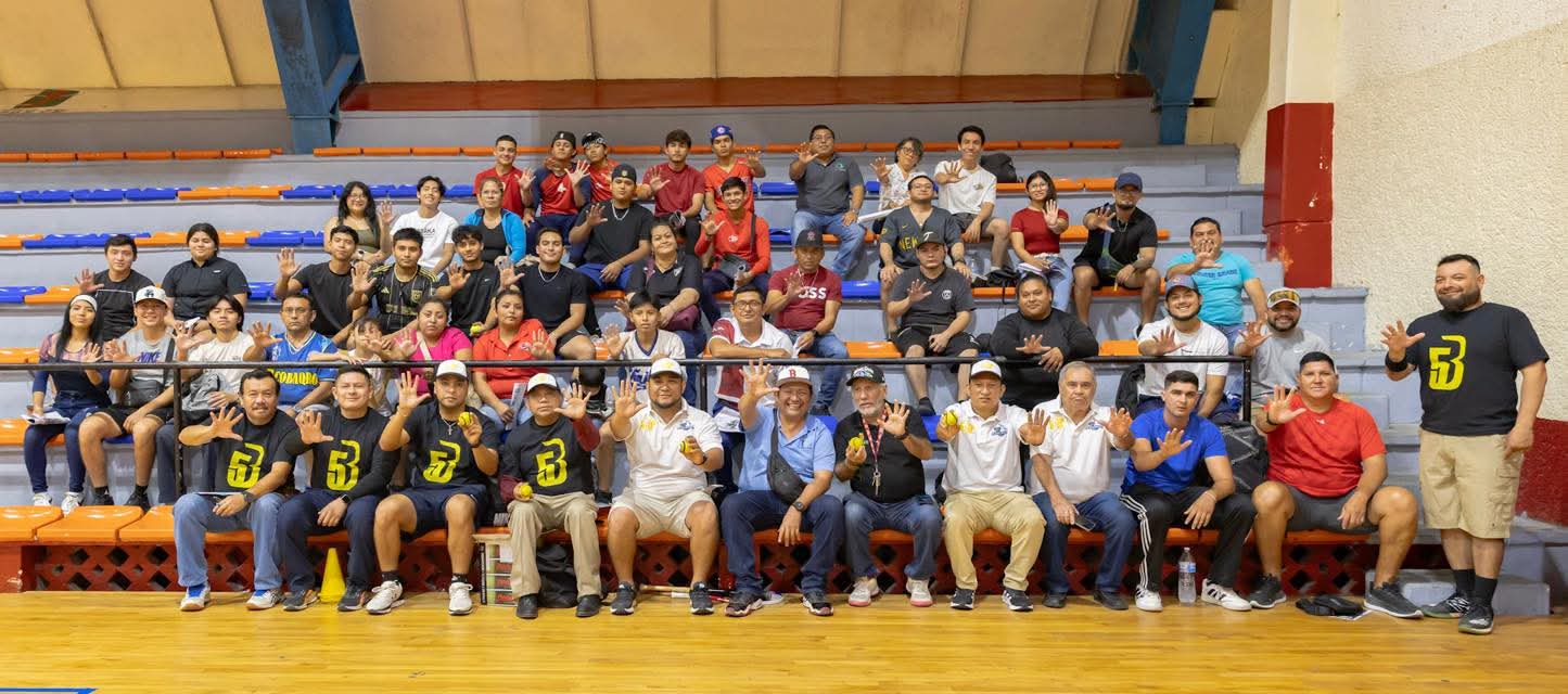CANCÚN, Q. ROO a 25 de enero 2026.- Con muy poco tiempo de haber salido a la luz en Quintana Roo el Beisbol 5, la tarde del pasado viernes en el gimnasio de usos múltiples “Kuchil Baxal” de la SM 21, la Asociación Estatal de Beisbol y Softbo (AEBSQROO), en coordinación con la Comisión del Deporte de Quintana Roo (CODEQ); el Instituto de Cultura Física y Deportes de Benito Juárez (IMCFDBJ), y la Secretaria de Educación de Quintana Roo (SEQ) se llevó a cabo la primera clínica de capacitación de este novedoso deporte.
