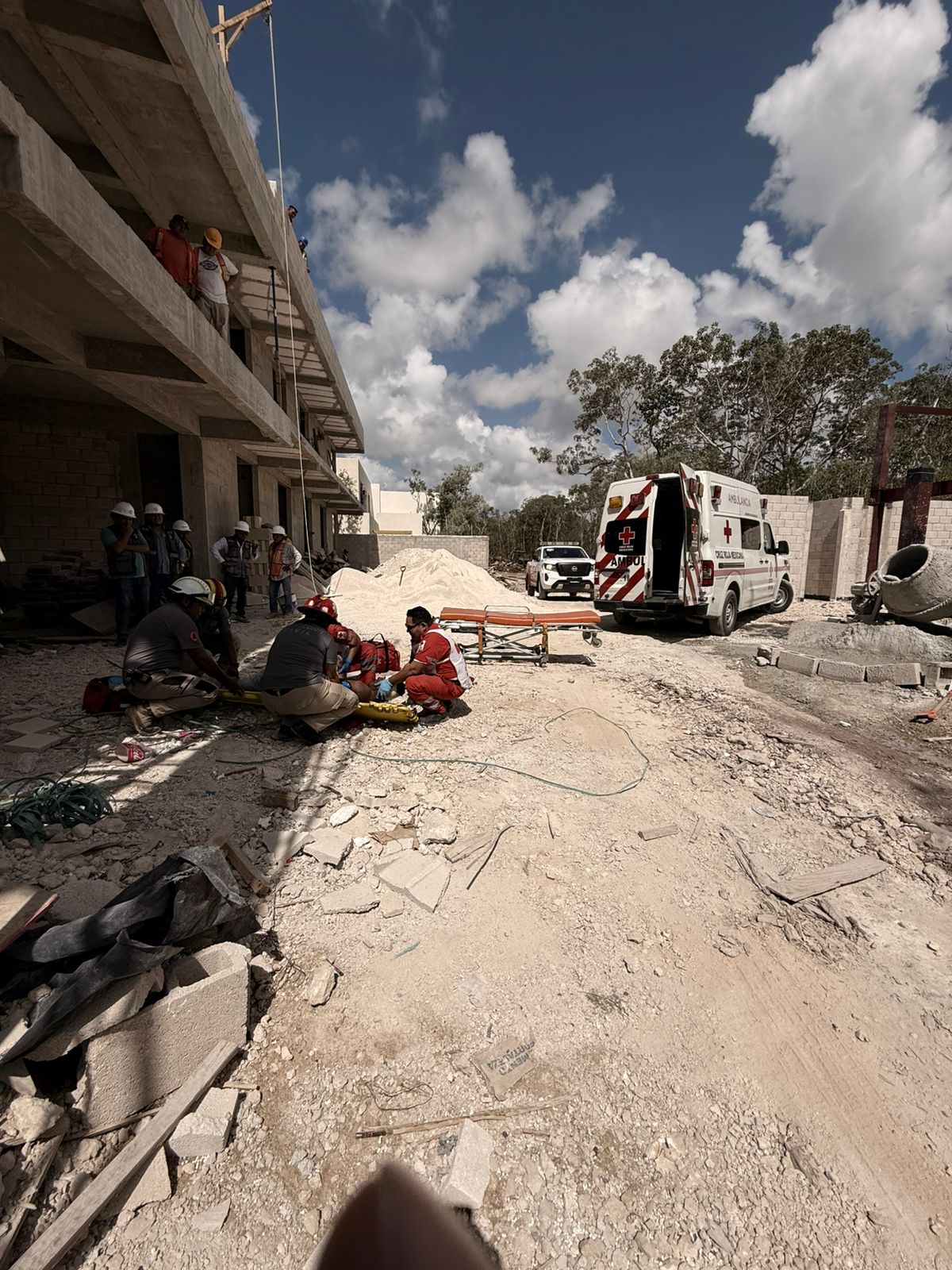 TULUM a 11 de junio . — Un trabajador de la construcción resultó gravemente lesionado este miércoles al caer desde el segundo piso de una obra en proceso dentro del desarrollo habitacional Zamaya, ubicado al sur de Tulum, en las inmediaciones de la colonia Marites.