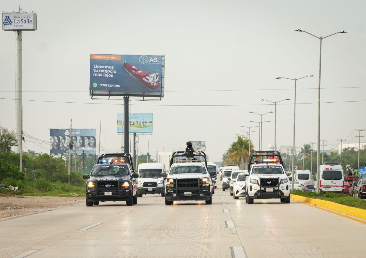 La idea es que las patrullas marquen el ritmo (70 km/h en Blvd. Colosio) y concienticen a los conductores a respetar límites de velocidad, durante el recorrido, las patrullas se reagrupan en circuito (“carrusel”) a lo largo del bulevar, mientras cuatro puntos estratégicos a lo largo de Colosio (Retornos de St. John’s, Campestre, salida de La Salle y Ocean Leader) están listos para apoyo inmediato.