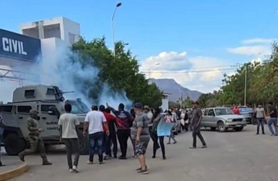 Las protestas se realizaron en el cuartel de la Guardia Civil, donde los marinos y policías utilizaron al menos dos vehículos blindados y gases lacrimógenos para dispersar a los inconformes