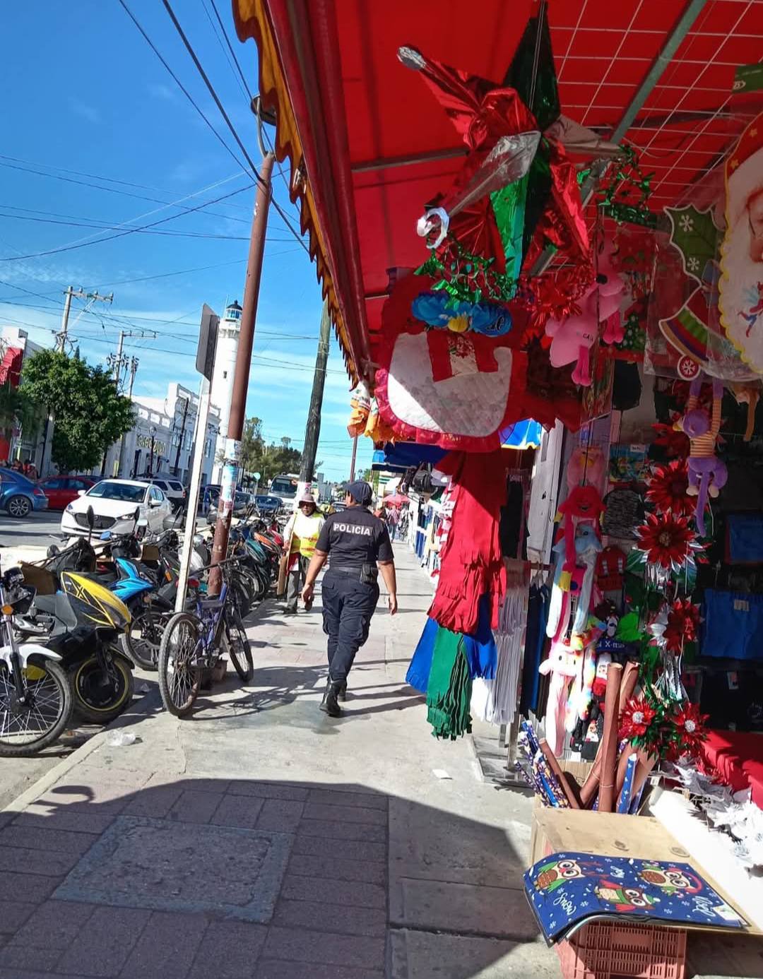 Elementos de la Dirección de Seguridad Pública y Tránsito (DSPT) dieron inicio el operativo “Navidad 2024”, para brindar protección a los habitantes y clientes durante sus compras decembrinas, con el propósito de que éstas actividades se desarrollen en un entorno de paz y tranquilidad.