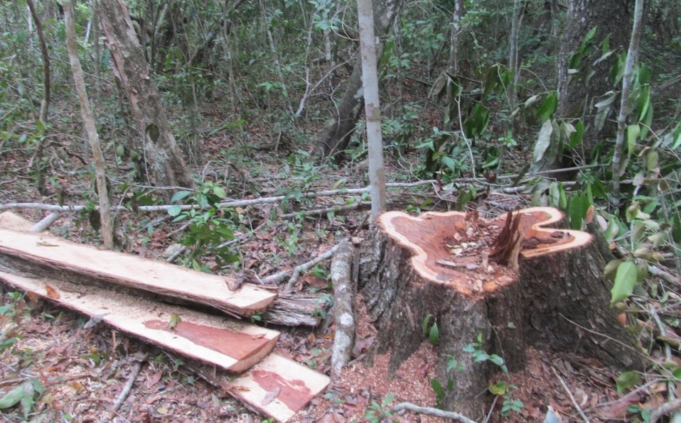 Durante el recorrido, realizado los días 12 y 13 de abril, se detectó el aprovechamiento forestal en un área dispersa de aproximadamente 20 hectáreas, donde se identificaron tocones de árboles de especies con alto valor comercial, como caoba, ciricote y cedro.