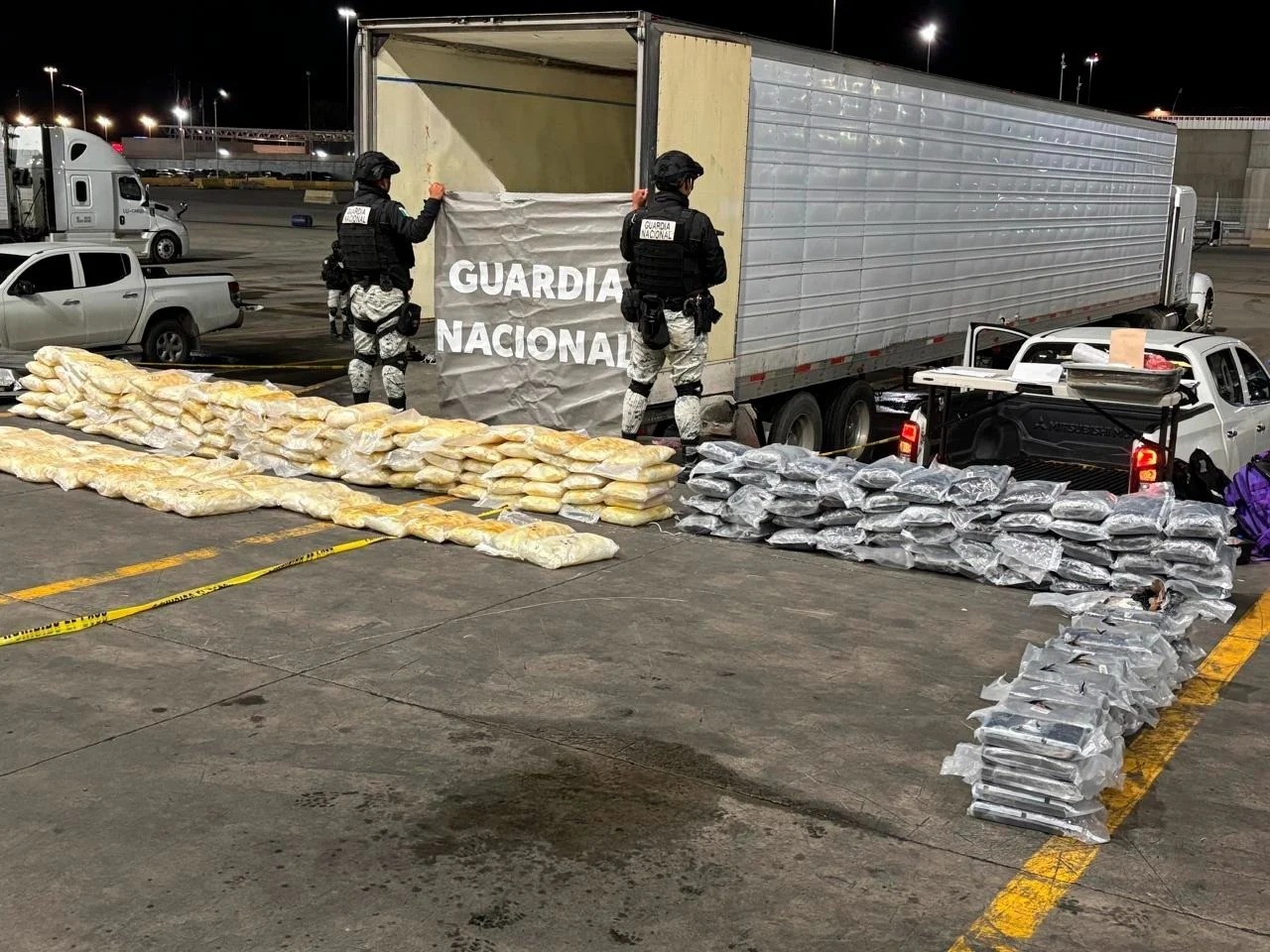 Así como el aseguramiento de 82 armas de fuego, 28 provenientes de Estados Unidos, 12 mil 515 cartuchos de diversos calibres, 437 cargadores, 26.2256 Kg de mariguana, 440.0281 kg de cocaína, 538.4106 kg de metanfetamina, 0.0125 Kg de heroína, 8.5618 Kg de fentanilo, $90 mil 775 en moneda nacional, 109 vehículos y dieciséis inmuebles.