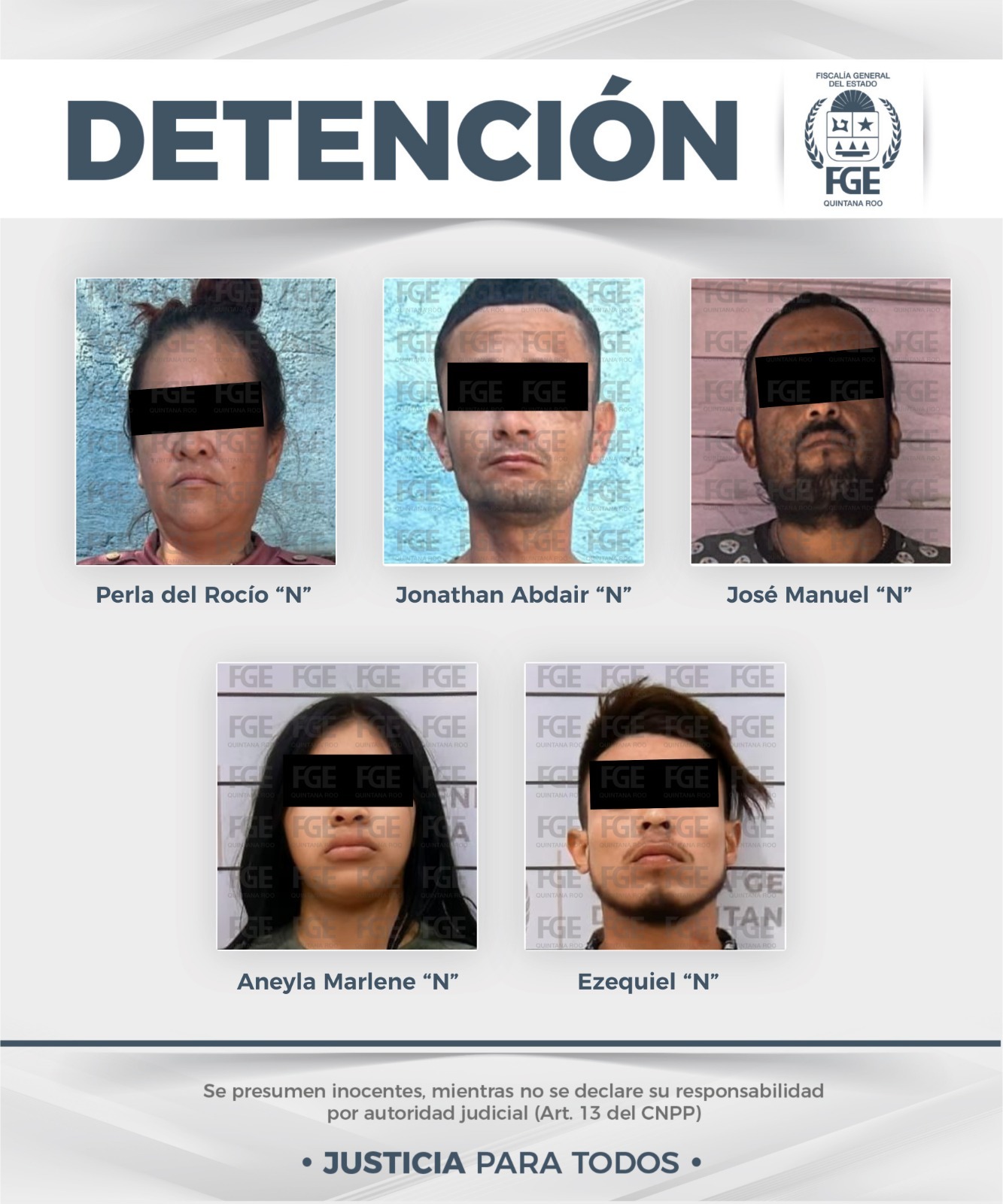 Uno de los operativos se desarrolló en el municipio de Othón P. Blanco, específicamente en un inmueble ubicado sobre la avenida Erick Paolo Martínez, entre las calles El Naranjal y Alfredo Villa Bonfil. En ese lugar, los agentes localizaron una libreta con anotaciones, dos teléfonos celulares, una cámara blanca, sustancia cristalina, vegetal seco con características similares a la marihuana y dos básculas grameras. En las inmediaciones fueron detenidos Perla del Rocío “N”, José Manuel “N” y Jonathan Abdair “N”, quienes presuntamente tenían en su poder hierba verde y una sustancia sólida de color rosado.