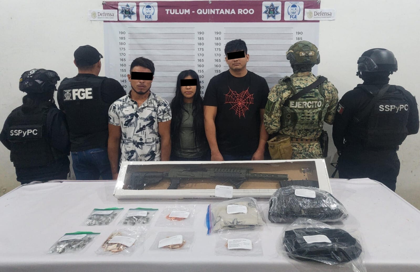 En el municipio de Cozumel se ejecutaron tres órdenes judiciales en distintos domicilios, donde se aseguraron cantidades de vegetal verde seco y artículos relacionados con su consumo. Por otra parte, en el poblado de Manuel Antonio Ay, municipio de Tulum, elementos de la Policía de Investigación localizaron un arma de fuego tipo revólver, polvo blanco similar a la cocaína y otras sustancias. En las cercanías fueron detenidos Ezequiel “N”, Juan Carlos “N” y Aneyla Marlene “N”, quienes presuntamente forman parte de un grupo criminal generador de violencia en la región.