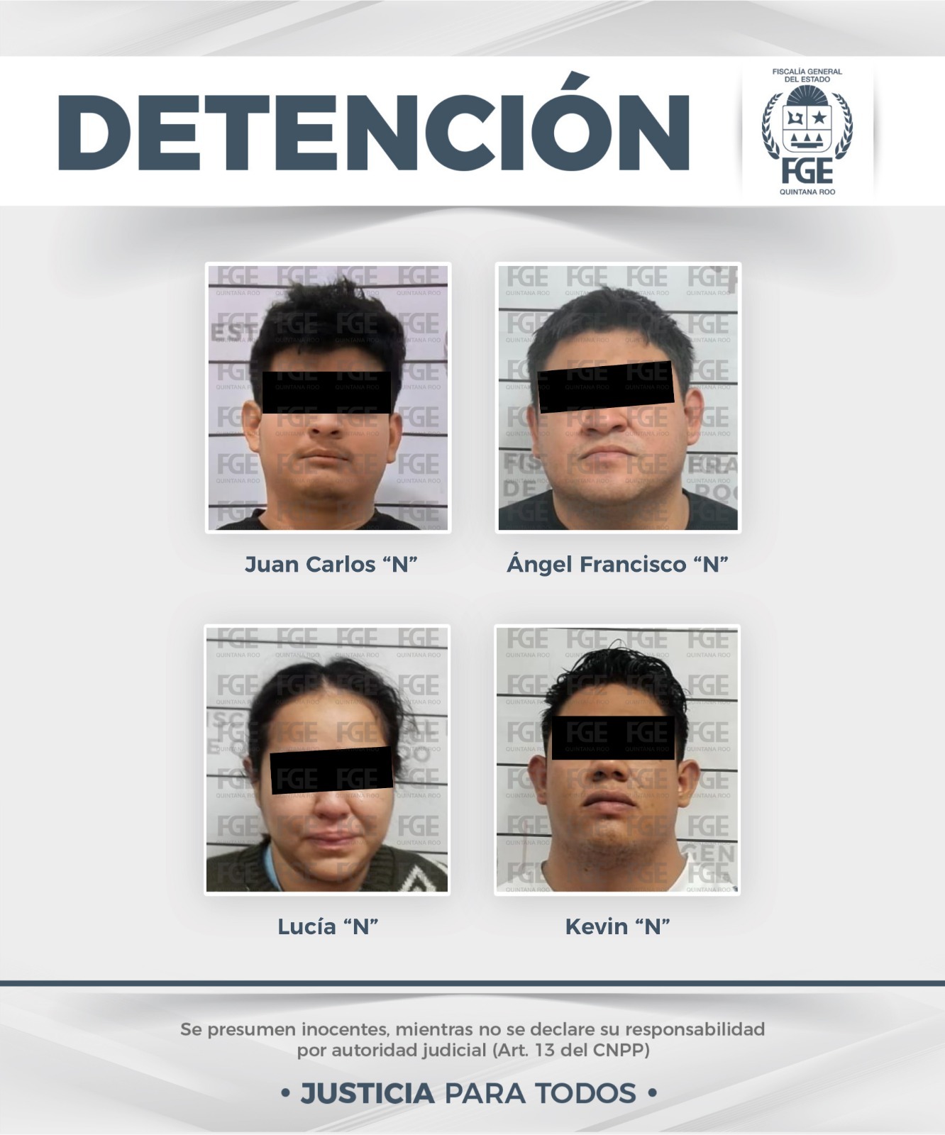 En Playa del Carmen se realizaron varias diligencias judiciales. En la colonia Luis Donaldo Colosio, sobre la calle 98 Norte, se aseguraron presuntas drogas y fueron detenidos Kevin “N” y Lucía “N”. Asimismo, en otro inmueble de la misma colonia, en la calle 84 Norte, fue detenido Ángel Francisco “N”, mientras que en un tercer cateo, sobre la calle 82, los agentes localizaron más hierba verde seca y una báscula digital.