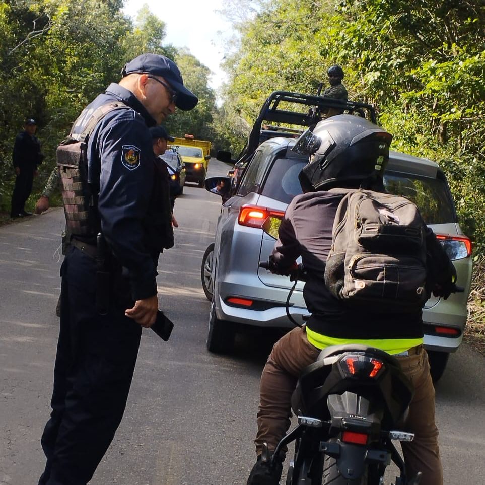 CHETUMAL, 14 de febrero. – Elementos de la Policía Rural y Municipal mantienen un filtro preventivo provisional en el poblado de Muyil, Felipe Carrillo Puerto, con el objetivo de verificar a automovilistas y motociclistas, garantizando el orden y la seguridad en la zona. Estas acciones buscan prevenir delitos y reforzar la vigilancia en los accesos carreteros.