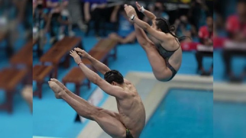 Olvera conquistó medallas de plata en equipos mixtos, trampolín de un metro y sincronizados de 3 metros, junto a Juan Celaya.