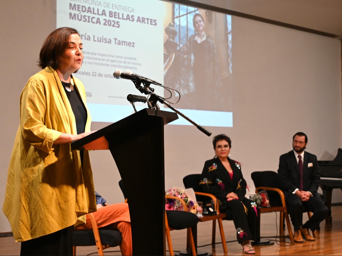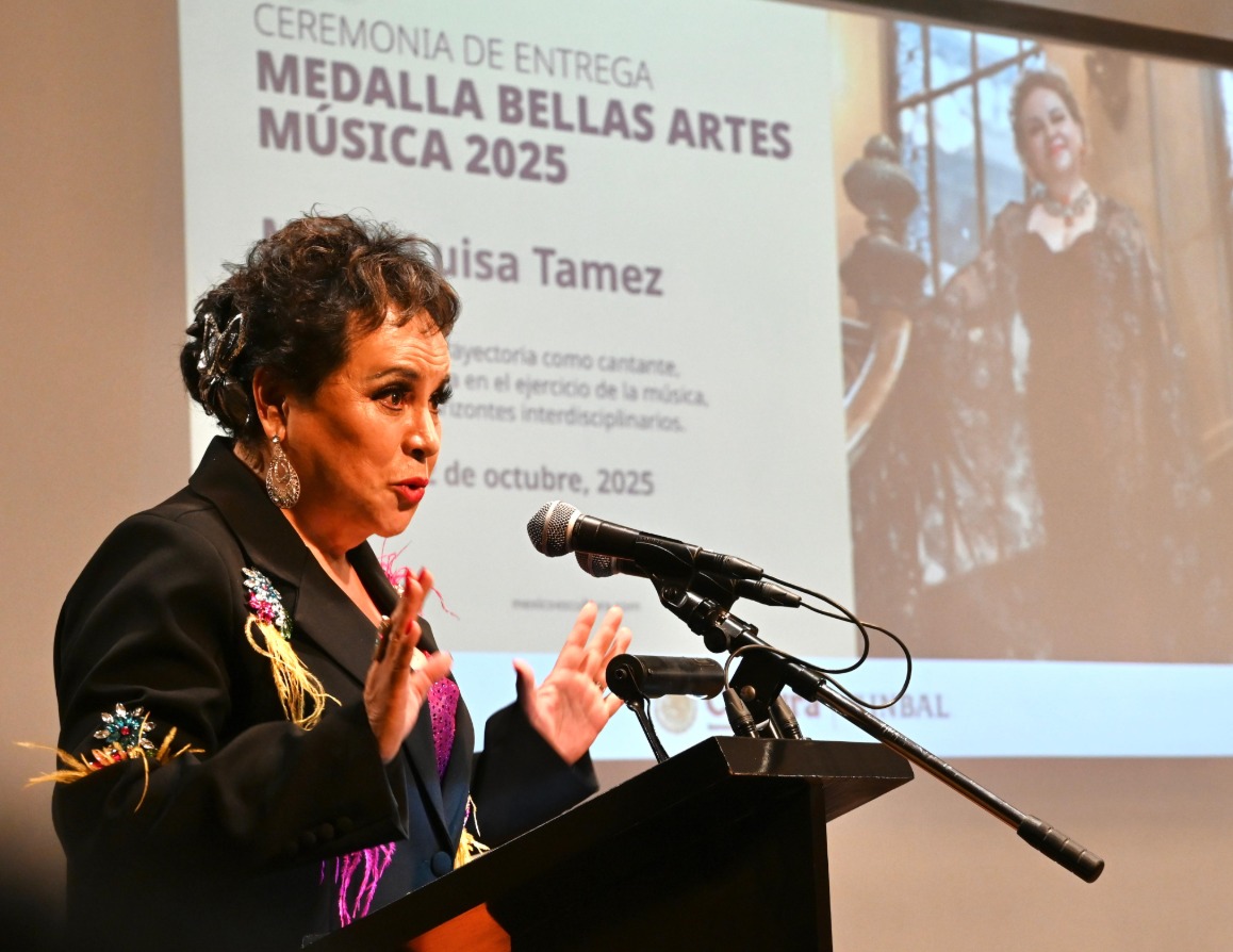 La Secretaría de Cultura del Gobierno de México y el Instituto Nacional de Bellas Artes y Literatura (INBAL), a través de la Coordinación Nacional de Música y Ópera, entregaron la Medalla Bellas Artes 2025 en Música a la mezzosoprano María Luisa Tamez, una de las figuras más destacadas de la ópera nacional.