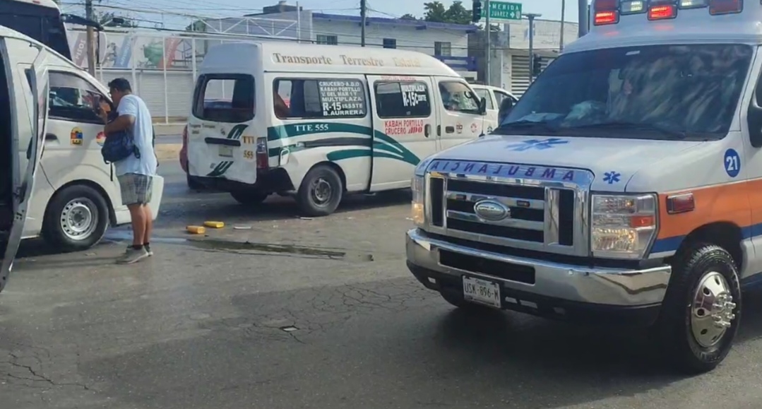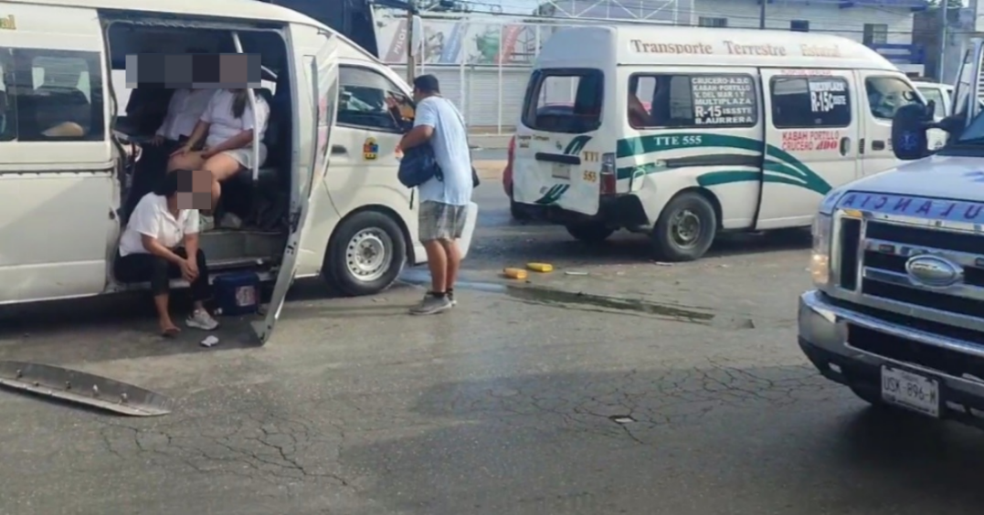 Cancún, 22 de junio.– La imprudencia al volante de un chofer de la empresa de transporte Del Valle provocó este domingo un nuevo accidente en Cancún, luego de que el autobús que conducía impactara a dos combis de servicio público en el cruce de las avenidas López Portillo y Uxmal. El saldo fue de varios pasajeros lesionados y una escena de caos en plena vía.