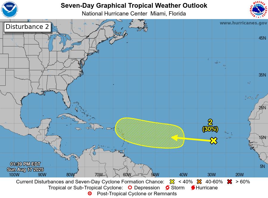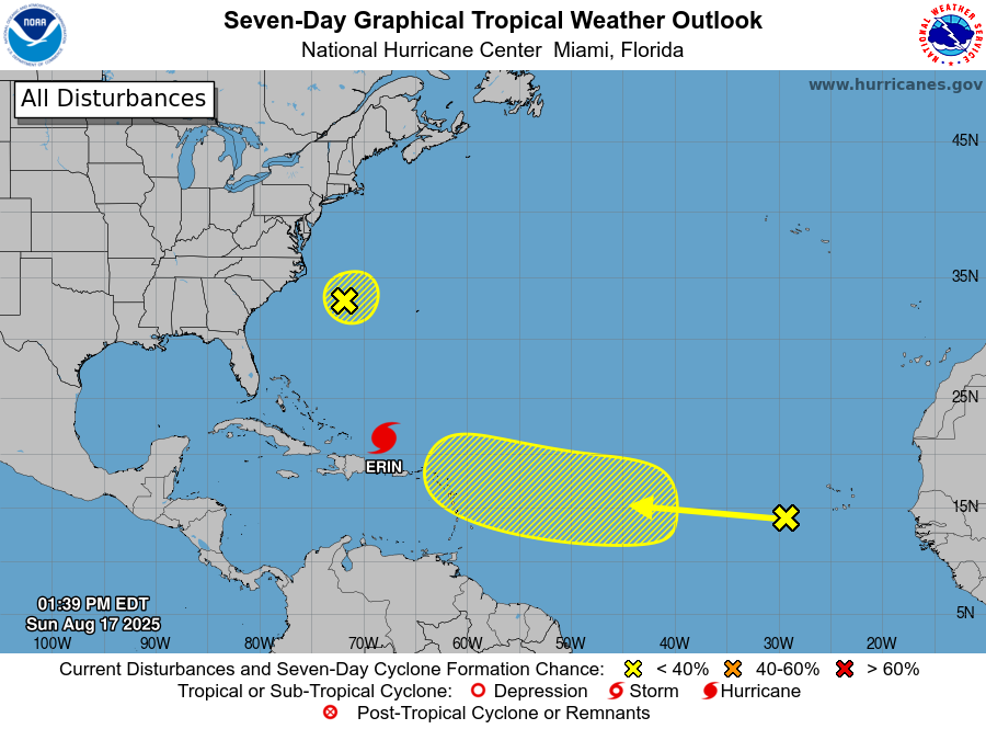 CHETUMAL, 17 de agosto.- Mientras el huracán Erin se mantiene activo, una nueva zona de baja presión comenzó a formarse en el océano Atlántico central, con potencial para formar un ciclón que esta vez sí se dirija hacia las islas del Caribe.
