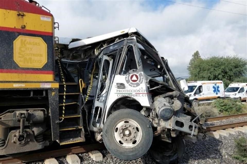 Un tren de carga impactó y arrastró un autobús de pasajeros en un cruce ferroviario en Comonfort, Guanajuato, lo que dejó un saldo preliminar de cinco personas fallecidas y al menos cuatro heridas que requirieron atención de urgencia.