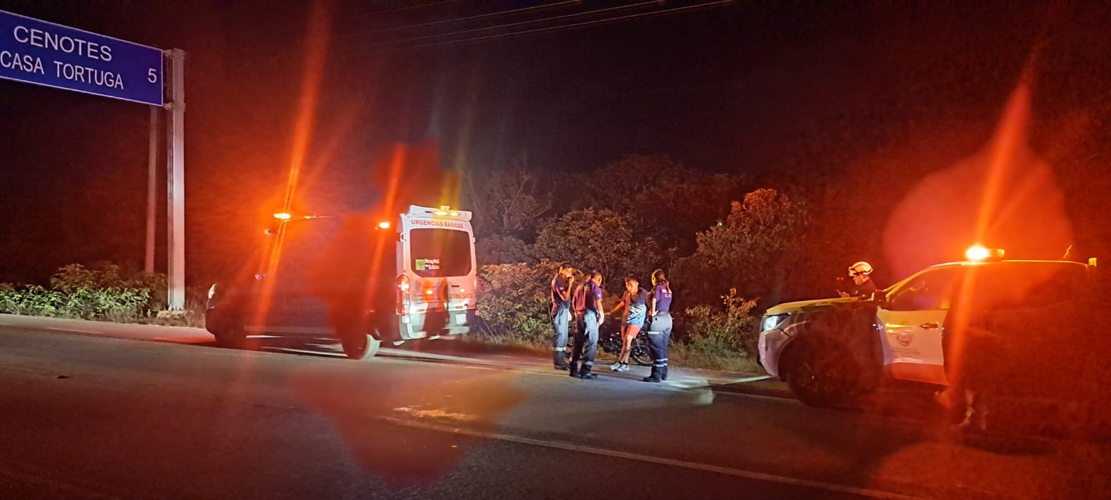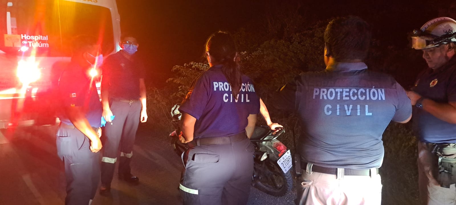 El percance ocurrió en el kilómetro 249 del tramo Tulum–Playa del Carmen, cerca del puente de Chemuyil, donde el joven motociclista perdió el control y terminó derrapando sobre el asfalto, siendo auxiliado poco después por paramédicos del Hospital de Tulum y personal de Protección Civil.
