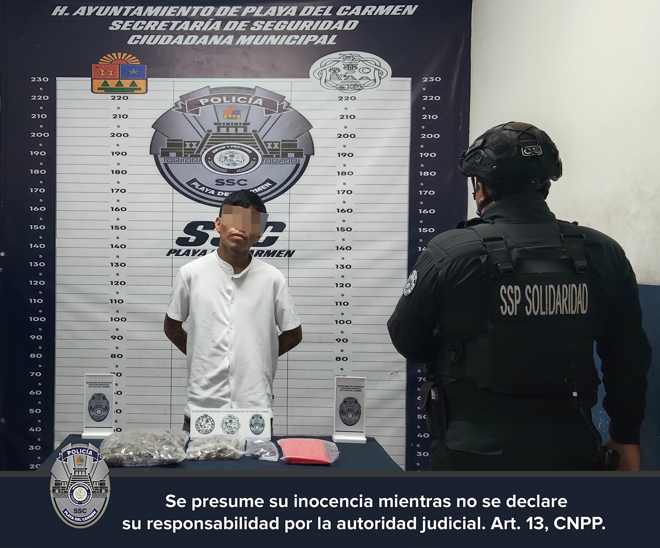Playa del Carmen, a 17 de junio de 2025. – La Secretaría de Seguridad Ciudadana de Playa del Carmen aseguró a una persona por presuntos delitos contra la salud, esto fue en los fraccionamientos Misión Las Flores y pescadores.