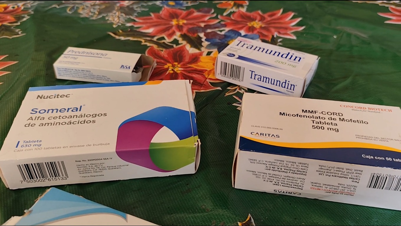 El costo de su tratamiento es inalcanzable para la mayoría de las familias en la zona: solo el micofenolato, uno de los fármacos que necesita para evitar el deterioro de sus riñones, cuesta entre 12 mil y 14 mil pesos por una dosis que dura cuatro o cinco meses. A eso hay que sumar anticoagulantes, vitaminas y otros medicamentos que elevan el gasto total hasta más de 30 mil pesos cada seis o siete meses.