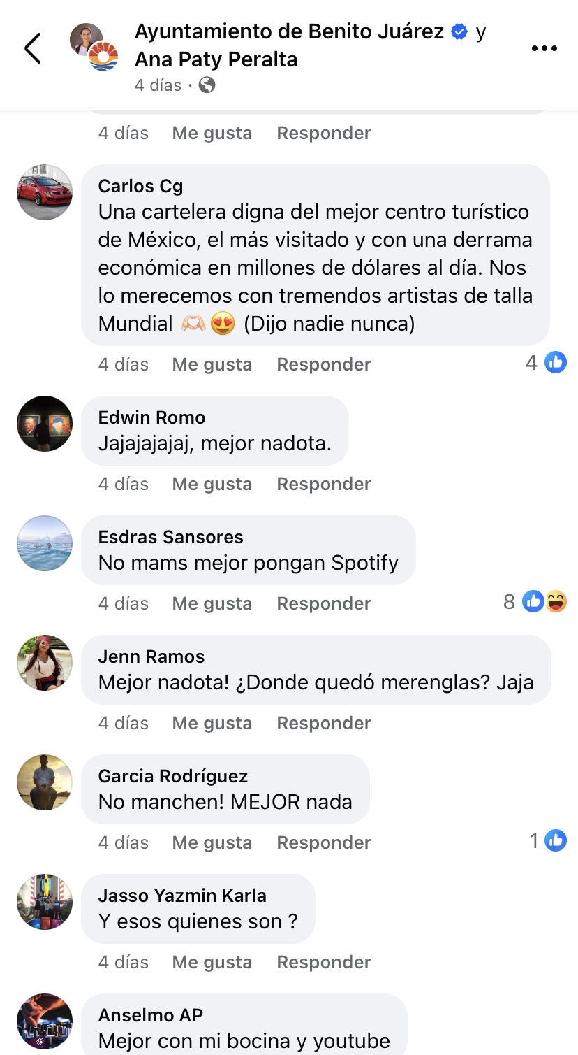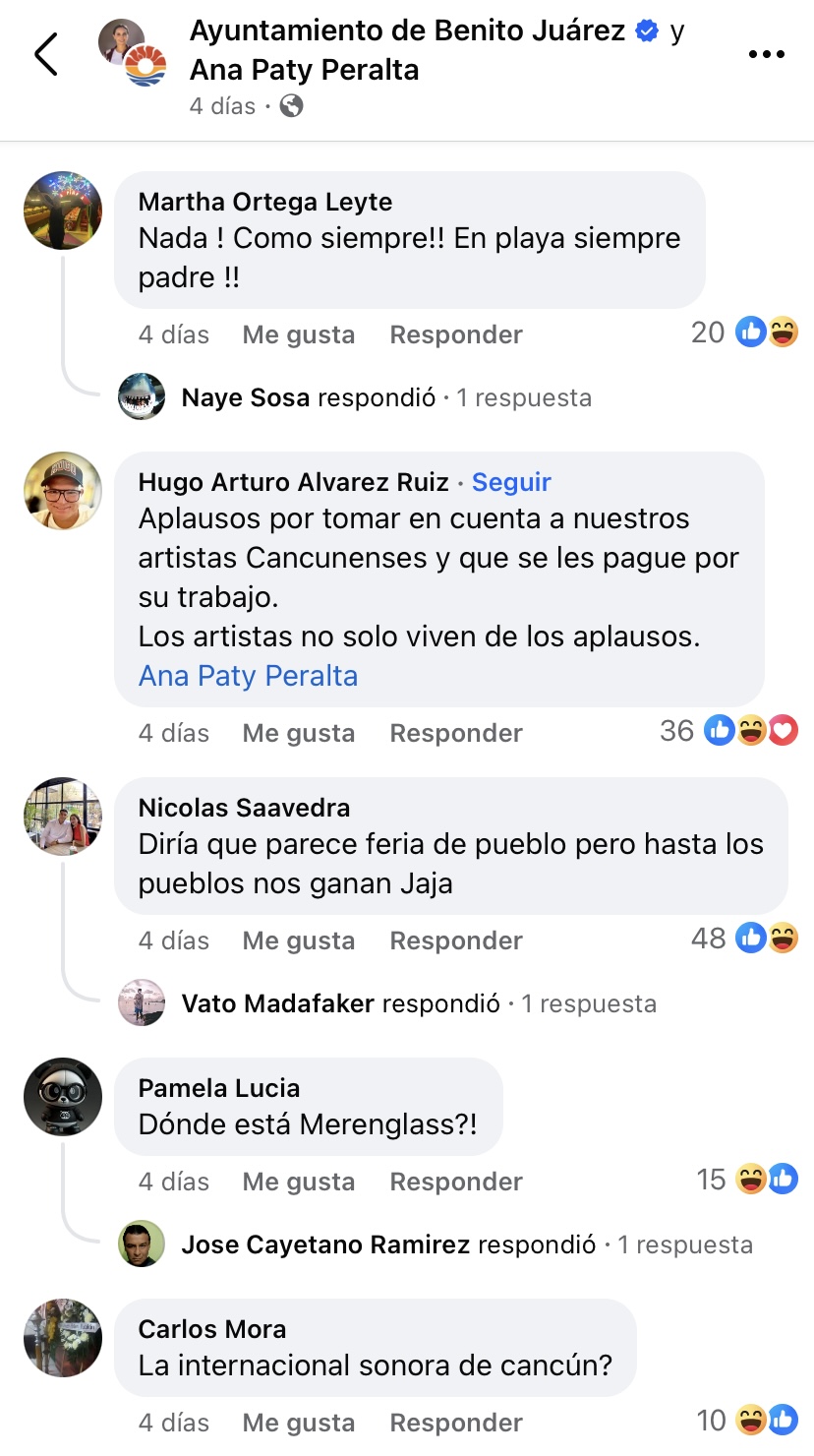 Hay que señalar que la realización de este evento generó una serie de comentarios, unos que reconocen la organización de este festejo con artistas locales y otros que lamentaron el programa al considerar que no existen artistas reconocidos.