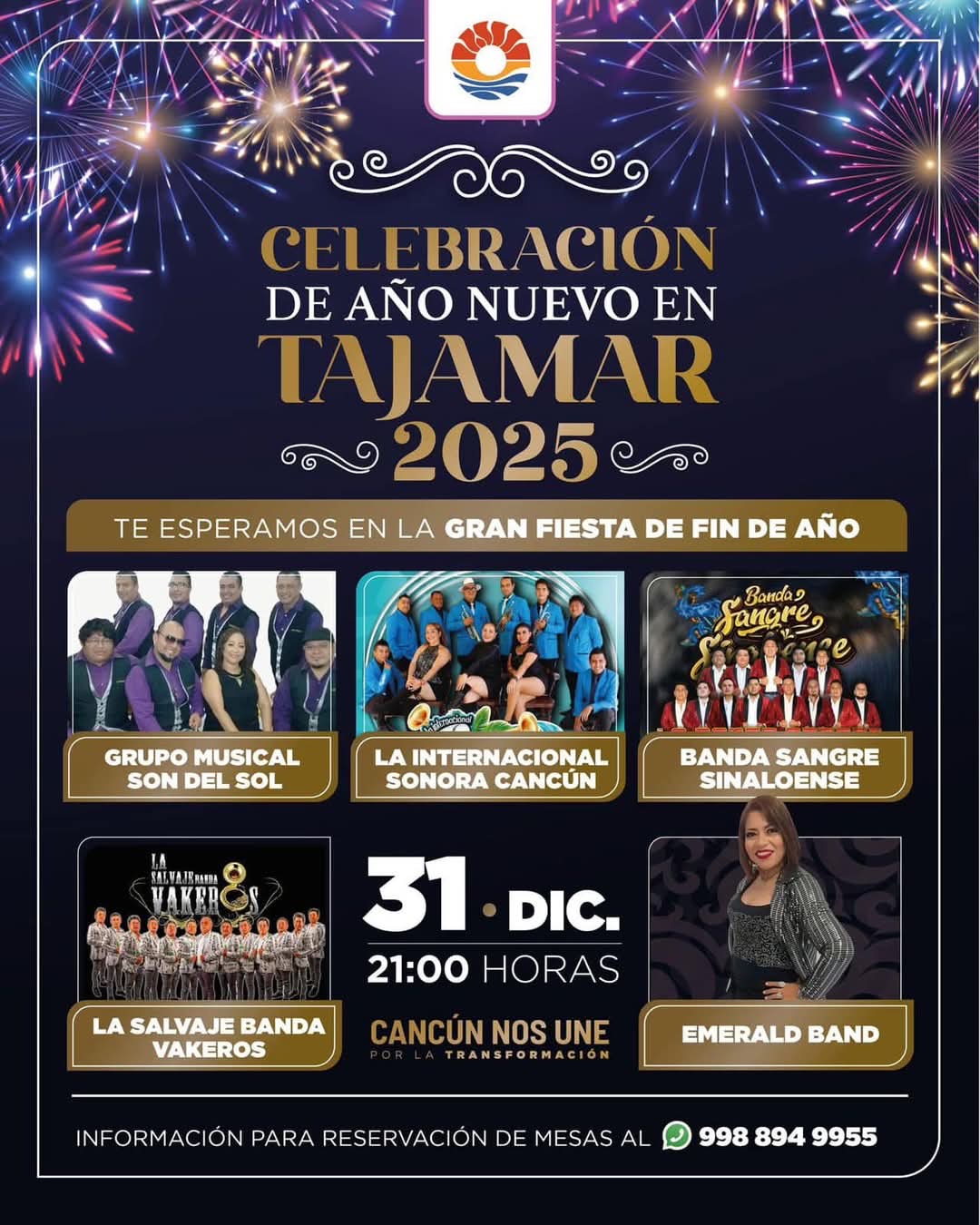 Dentro del programa artístico que se presentará para comenzar el año bailando, se encuentran: Grupo Musical Son del Sol; La Internacional Sonora Cancún; Banda Sangre Sinaloense; La Salvaje Banda Vakeros; y Emerald Band.