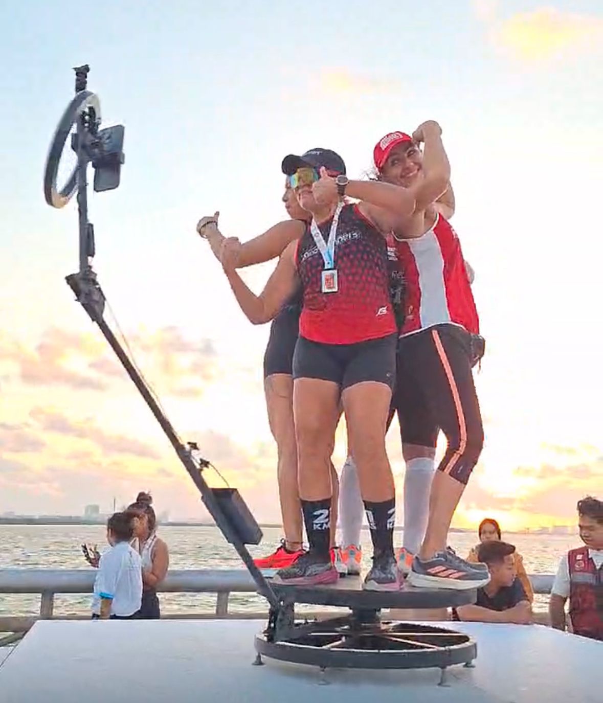 Por su parte la corredera Dulce Cen fue -profeta en su tierra-, ya que la de Cancún, se convirtió en la primera mujer en cruzar la meta, al romper el listón en 1:32:30 horas, aventajando por más de ocho minutos a Beyra Hadad (1:40:49), que fue sublíder y por diez al tercer lugar, que ocupó María del Mar Anitua Valdominos (1:42:54).