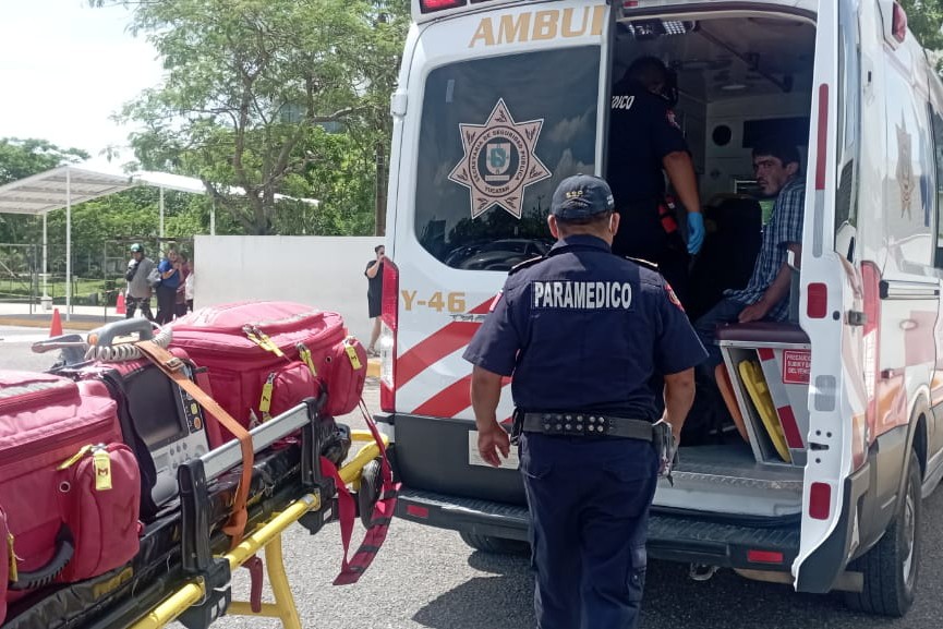 El señor de aproximadamente 50 años fue abordado en una ambulancia para ser trasladado a un hospital y recibir una mayor atención médica.