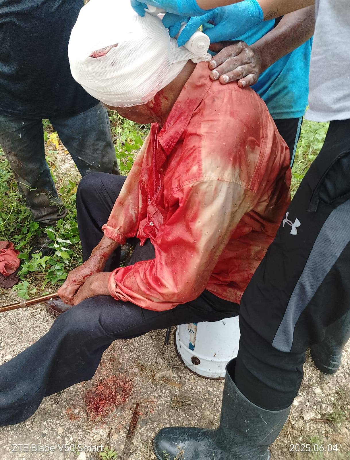 Una familia quedó varada en una brecha rumbo a Chetumal al intentar trasladar a un adulto mayor herido; paramédicos lo auxiliaron y lo llevaron de urgencia al hospital general