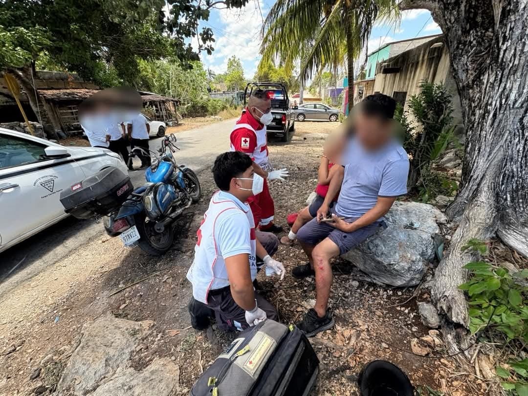 FELIPE CARRILLO PUERTO a 08 de mayo.— Un accidente vial registrado en calles de la colonia Leona Vicario dejó como saldo daños materiales y dos personas policontundidas, luego de que el conductor de un taxi no respetara un alto obligatorio e impactara a una motocicleta en la que viajaba una pareja.