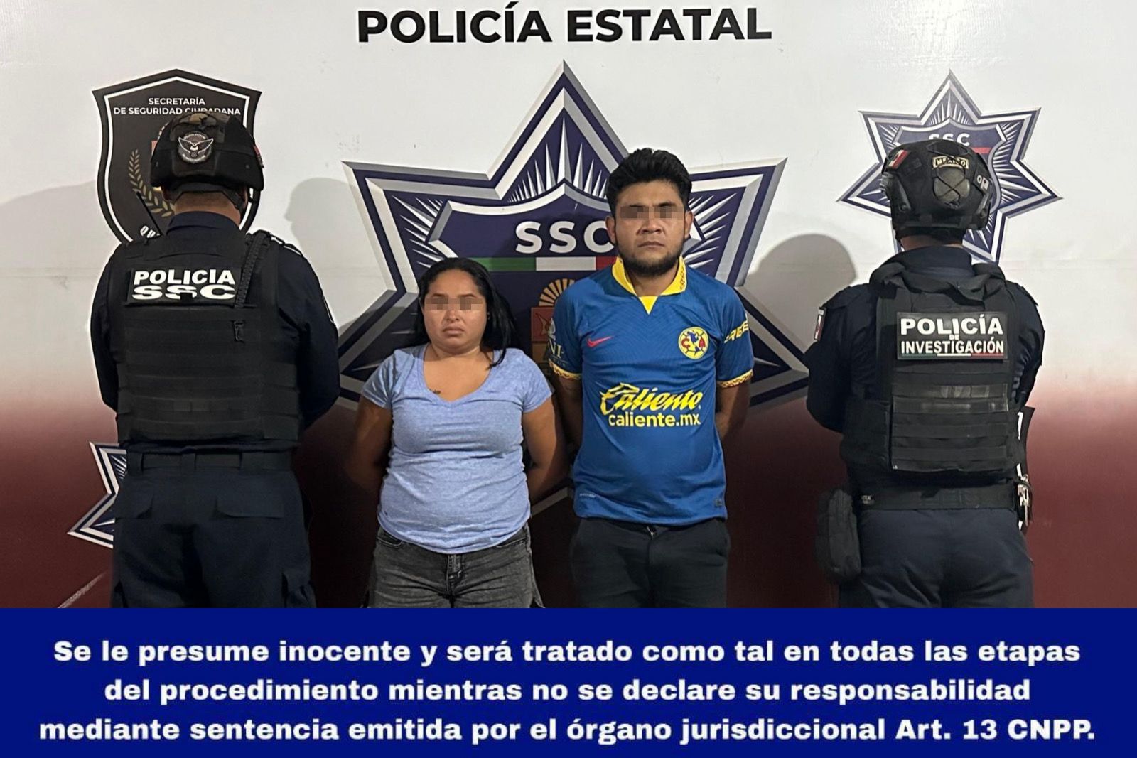 Pareja es Detenida Tras Lanzar Objetos Contra una Patrulla en Supermercado de Cancún