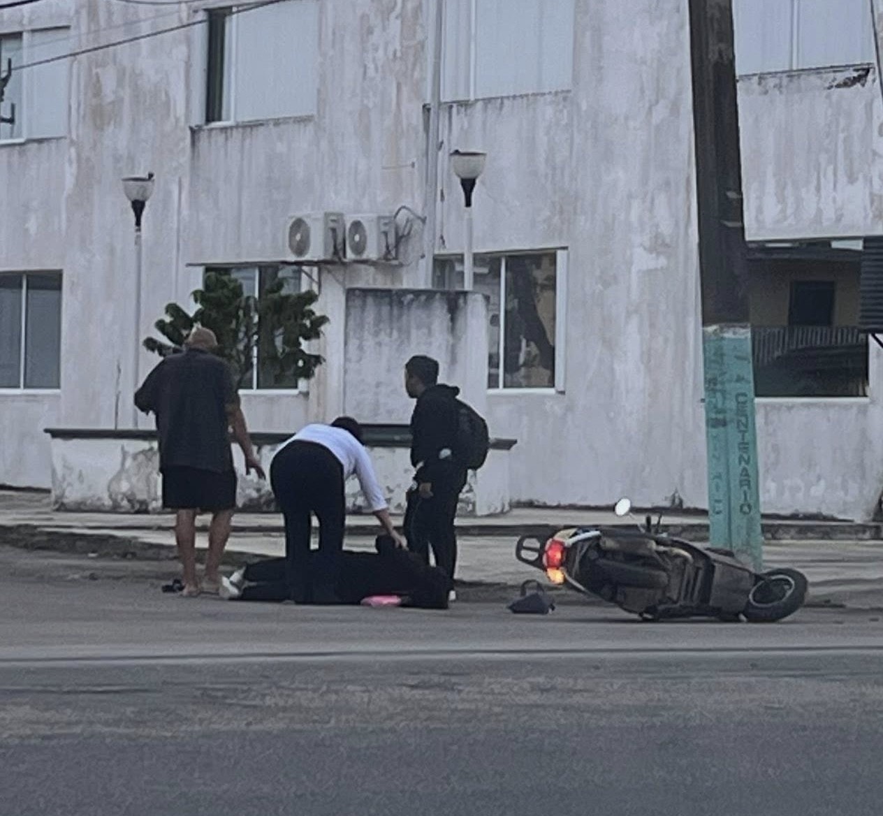 Chetumal, 8 de noviembre.- Un accidente vehicular registrado la tarde de este viernes en la capital del estado dejó como saldo a dos jóvenes con heridas leves, luego de que una motocicleta fuera impactada por un automóvil en la colonia Adolfo López Mateos. El percance ocurrió en el cruce de la Calzada del Centenario con la calle Benjamín Hill, una de las zonas de mayor tránsito en Chetumal, donde la falta de precaución al conducir volvió a ser el principal factor del siniestro.