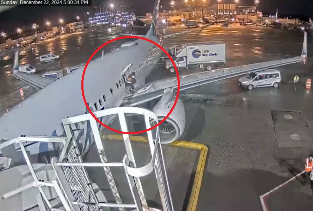 🇺🇸🚨 | Una pasajera de un vuelo de Alaska Airlines abrió “por ansiedad” la puerta de emergencia poco después de aterrizar y se subió al ala del avión.