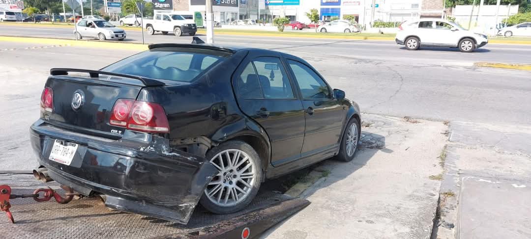 El taxi con número económico 3245 del sindicato “Lázaro Cárdenas del Río”, que también circulaba sobre la lateral, no logró frenar y chocó con el costado derecho del auto.