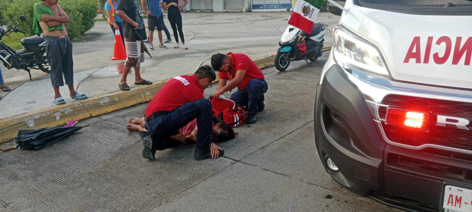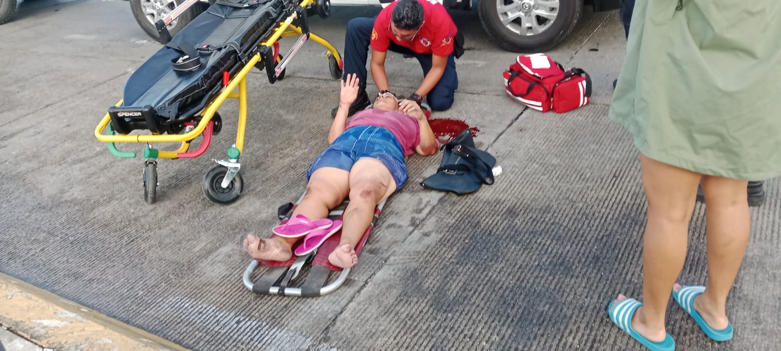 Una mujer identificada como Teresa fue atropellada en el centro de Chetumal; sufrió traumatismo craneoencefálico y fue trasladada de emergencia a un hospital para recibir atención médica especializada