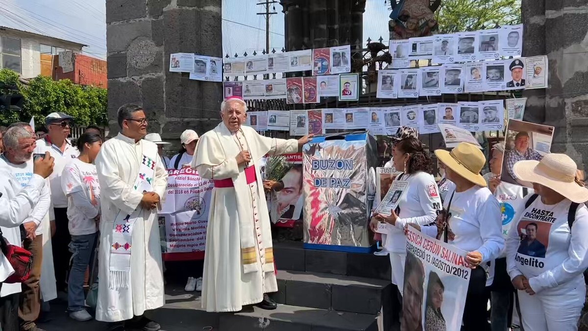 Frente al chapitel de la Iglesia del Calvario, ubicada al norte del centro de Cuernavaca —y justo a la mitad del recorrido de la caminata—, el obispo anunció la instalación del Buzón de la Paz: un espacio anónimo donde quienes tengan información sobre personas desaparecidas puedan depositarla, con la esperanza de avanzar hacia la justicia y la verdad.