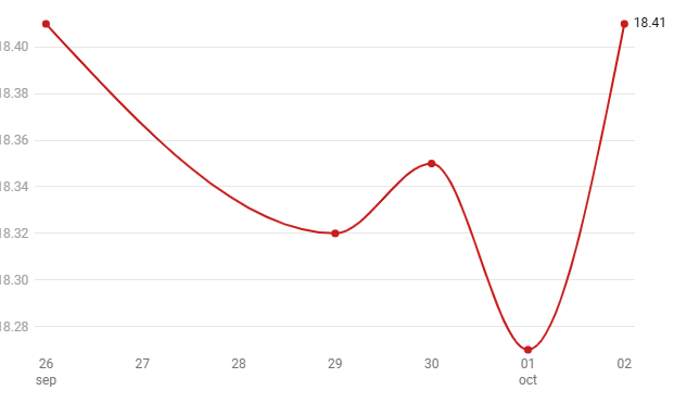 El dólar HOY 2 de octubre inicia operaciones con el tipo de cambio interbancario en 18.36 pesos mexicanos por billete verde, con una ligera pérdida del 0.05 por ciento, según datos de Bloomberg.