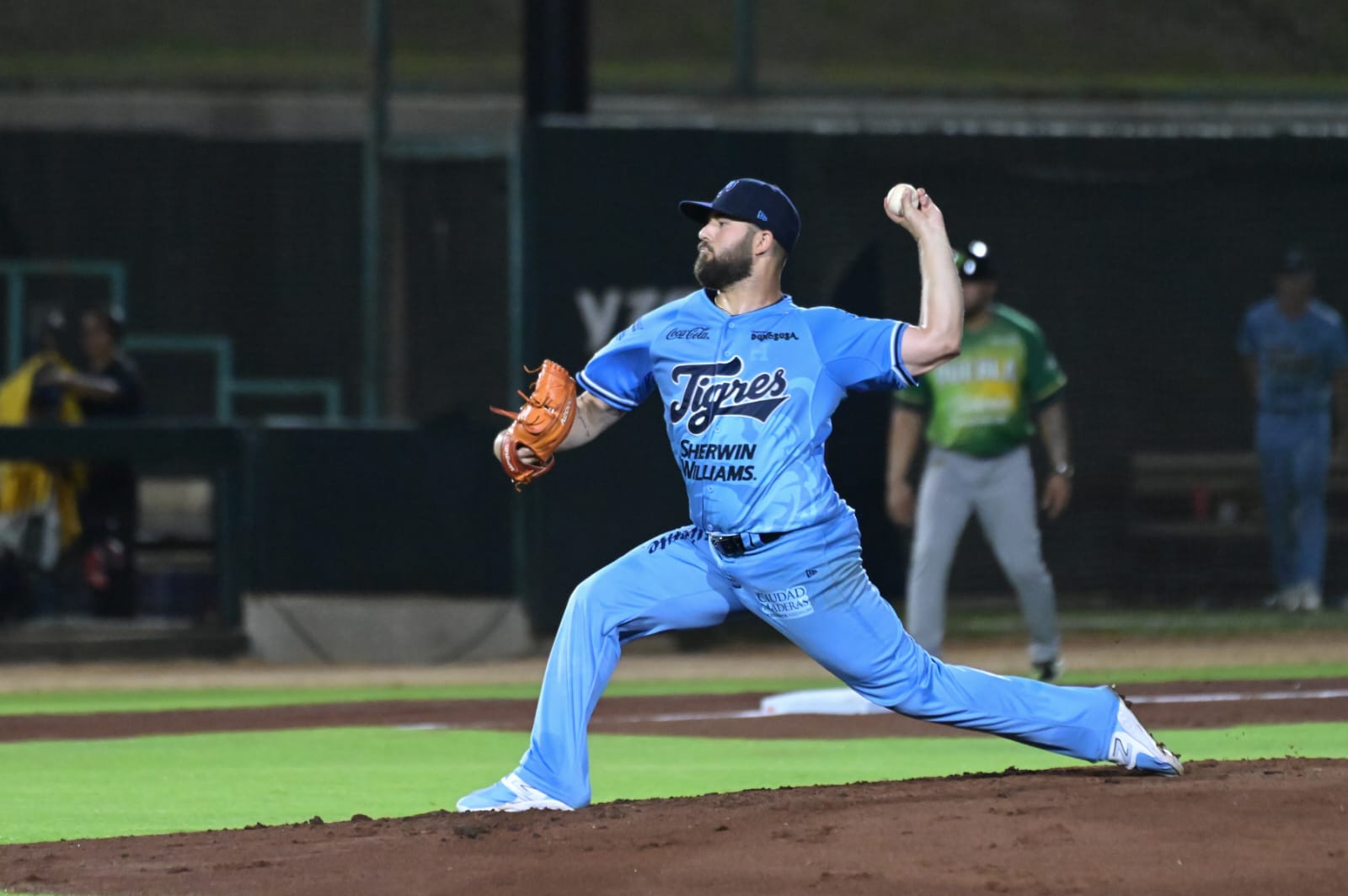 Los Tigres apretaron el -score- a 1-3 en la octava entrada, con dobletes de Miles Simington y Leonardo Reginatto, anotando el primero de ellos, con producción del brasileño.