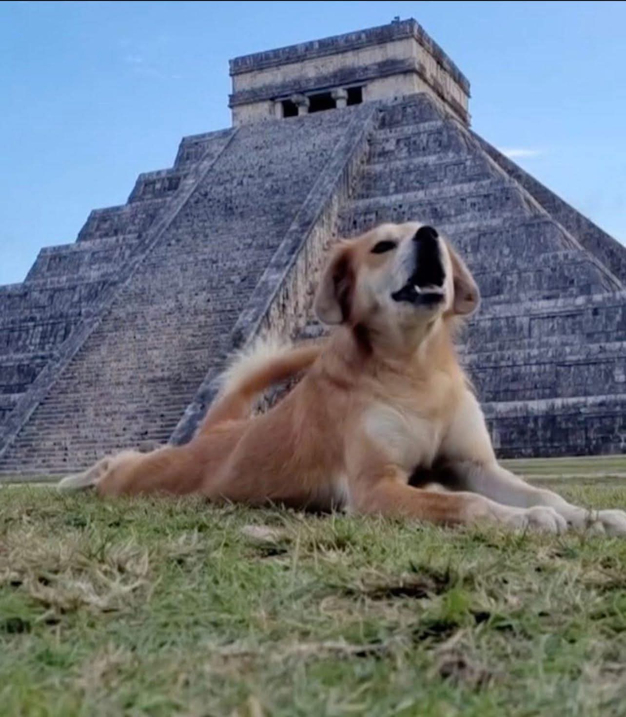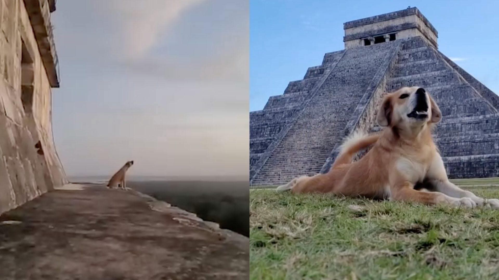🐶 Un perro que habita en la zona arqueológica de Chichén Itzá 🛕 protagonizó una escena poco común al subir hasta la cima de la Pirámide de Kukulkán y lanzar un aullido al amanecer 🌄, lo que fue captado en video y rápidamente se viralizó en redes sociales📱.