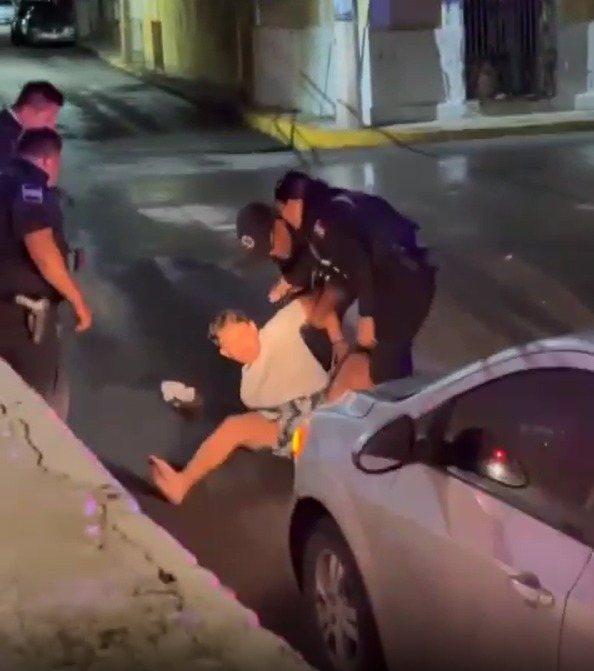 Para retener al sujeto donde usaron la fuerza policial de varios elementos hasta que pudieron exposarlo y subirlo a una patrulla en el video se percata dónde personas grabaron este hecho y en la detención de esta persona se le cayó su teléfono celular lo cual un elemento policial lo recoge del suelo y se lo mete a la bolsa cuestión que eso provocó indignación de personas que grabaron lo acontecido ya que anteriormente como usted sabe se había visto involucrado una mujer policial que le había robado o sustraído a una mujer tras llegar a ver a sus familiares detenidos en la puerta de la fiscalía general del estado lo cual nunca tuvo ningun castigo a este elemento tras el hecho que fue grabado donde estaba justo viendo el teléfono de esta persona.