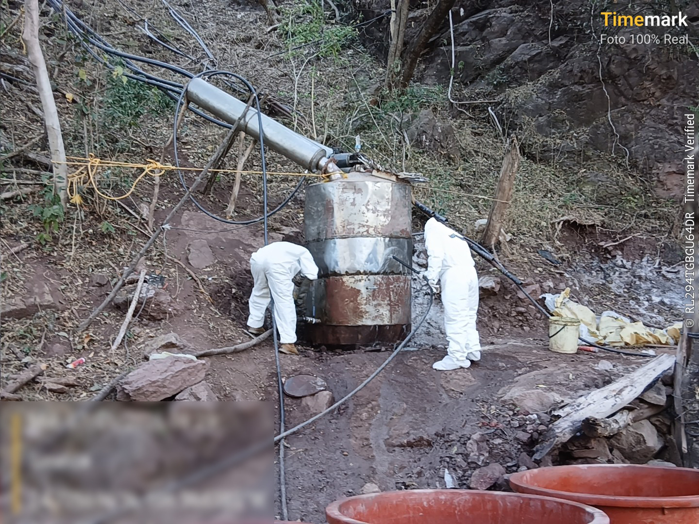 En una primera acción, personal naval localizó y neutralizó un laboratorio clandestino dedicado a la producción de metanfetamina en inmediaciones del poblado de Los Cedritos, Cosalá, Sinaloa.
