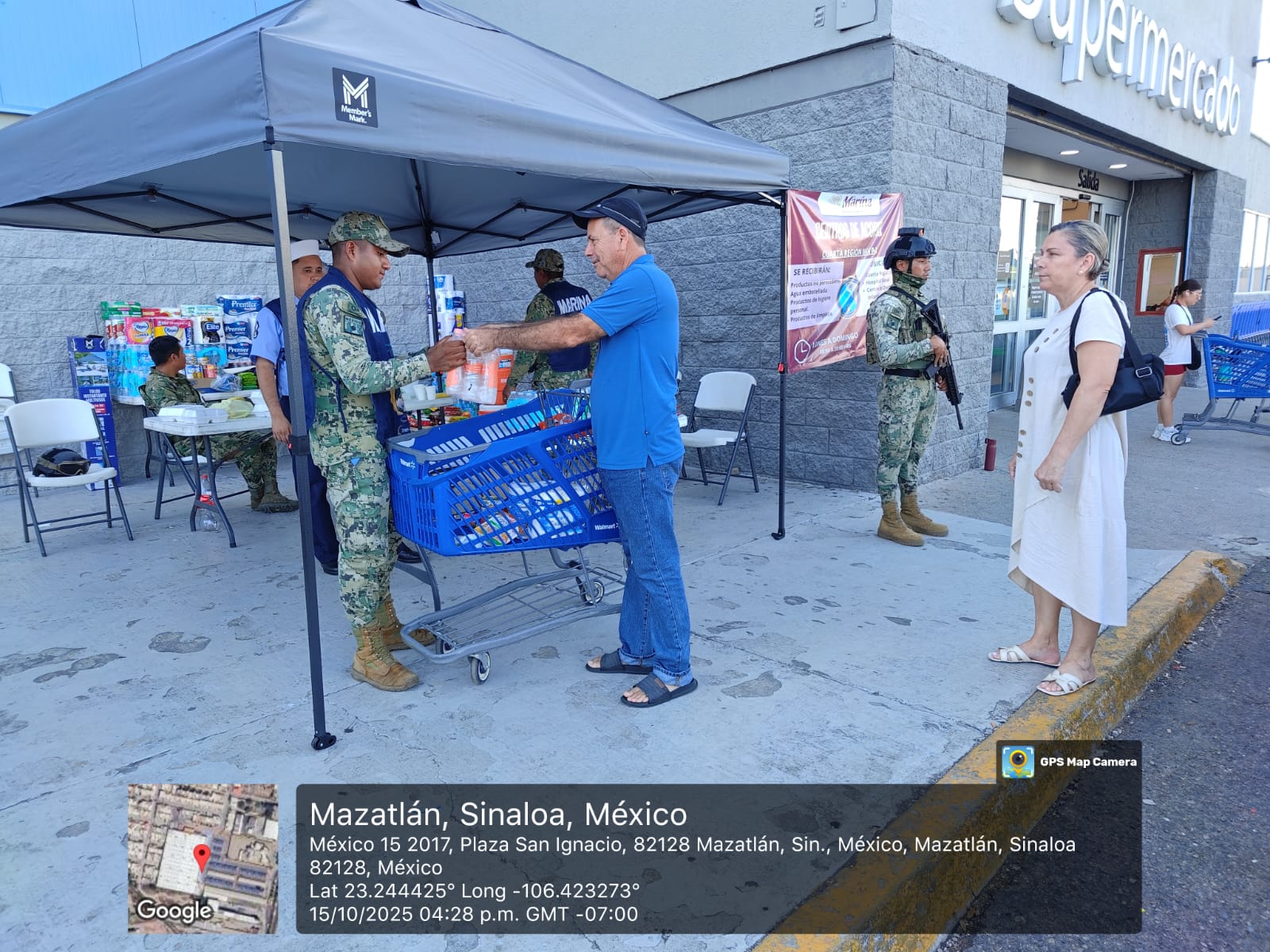 Mazatlán, Sin. – La Secretaría de Marina, a través de la Armada de México, por conducto de la Cuarta Región Naval, en el marco del Plan Marina, informa que, mantiene el firme compromiso de brindar apoyo a la población que lo necesita por lo que hoy se implementaron acciones para hacer llegar despensas con los apoyos que ha aportado la comunicada civil de Mazatlán, Sinaloa.