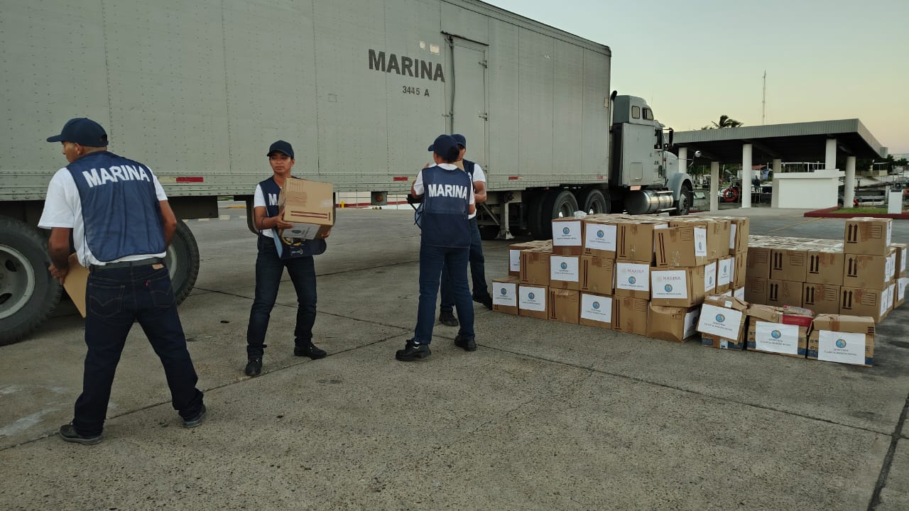 Por lo anterior, la Cuarta Región Naval de sus cuatro Centros de Acopio ha logrado recolectar 109 cajas con despensa, los cuales serán trasladadas vía terrestre para que se concentren en el Cuartel General del Alto Mando y posteriormente ser entregadas a la población civil que se vio afectada por los fenómenos meteorológicos en los estados de Veracruz, Puebla, Hidalgo y San Luis Potosí.
